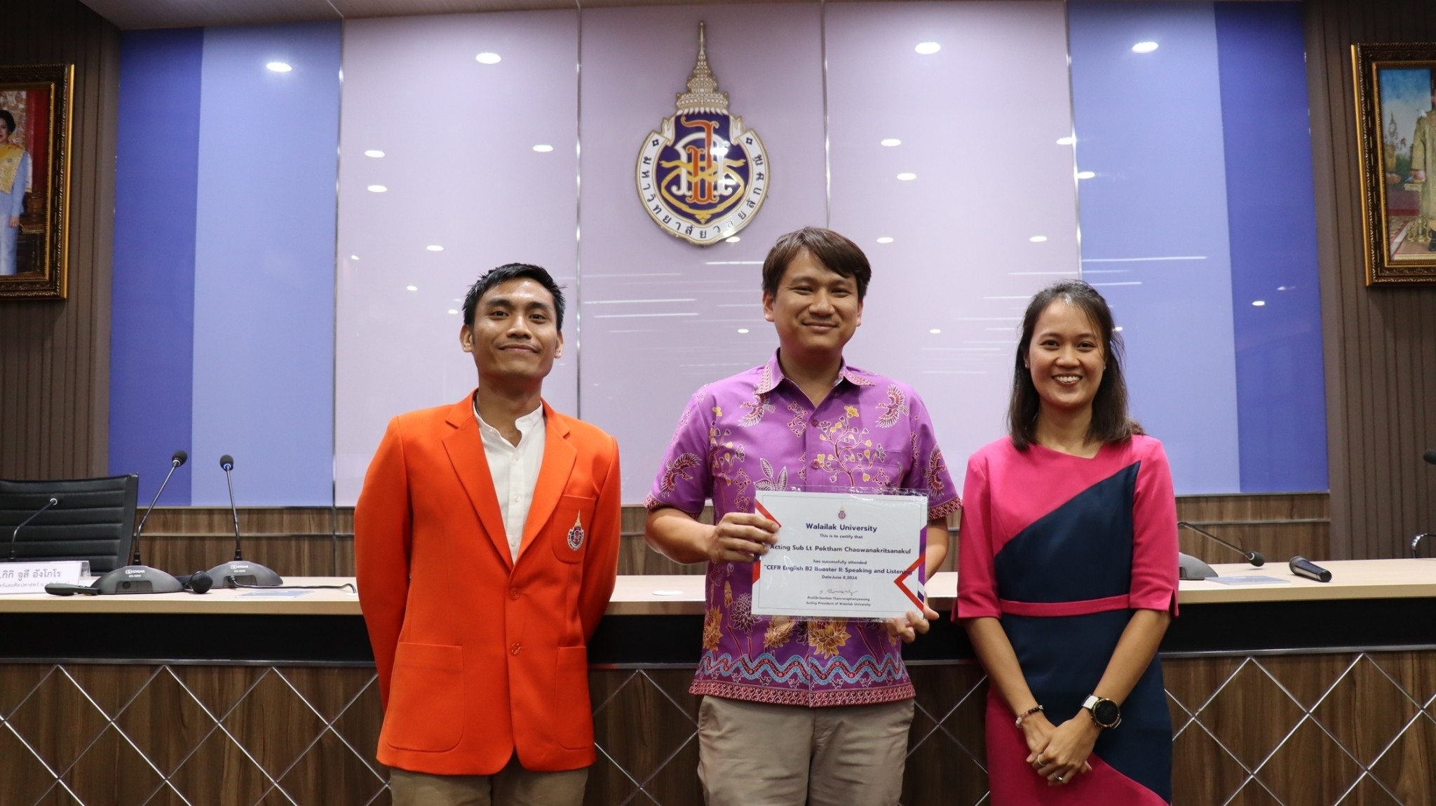เมื่อวันที่ 8 มิถุนายน 2567 หลักสูตรครุศาสตร์บัณฑิต และศูนย์บ่มเพาะและพัฒนาวิชาชีพครูสู่ความเป็นเลิศ สำนักวิชาครุศาสตร์และศิลปศาสตร์ ร่วมกับ ศูนย์บริการวิชาการ ในฐานะหน่วยพัฒนาครูมหาวิทยาลัยวลัยลักษณ์ จัดอบรมโครงการอบรมเชิงปฏิบัติการ พิชิตข้อสอบ CEFR B2 หลักสูตรที่ 2 การพูด และการฟัง ณ ห้องประชุมเขาหลวง อาคารสหกิจศึกษา มหาวิทยาลัยวลัยลักษณ์ มีผู้เข้าสนใจสมัครเข้าร่วมการอบรม จำนวน 38 คน ประกอบด้วย ครูระดับประถมศึกษา และมัธยมศึกษา และผู้สนใจทั่วไป