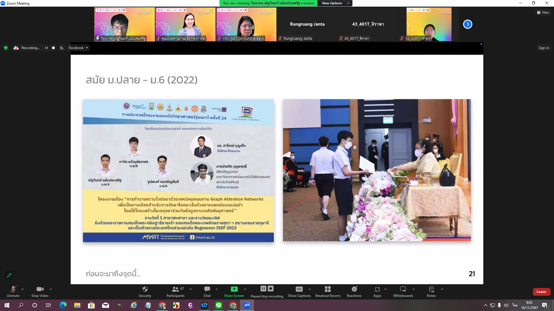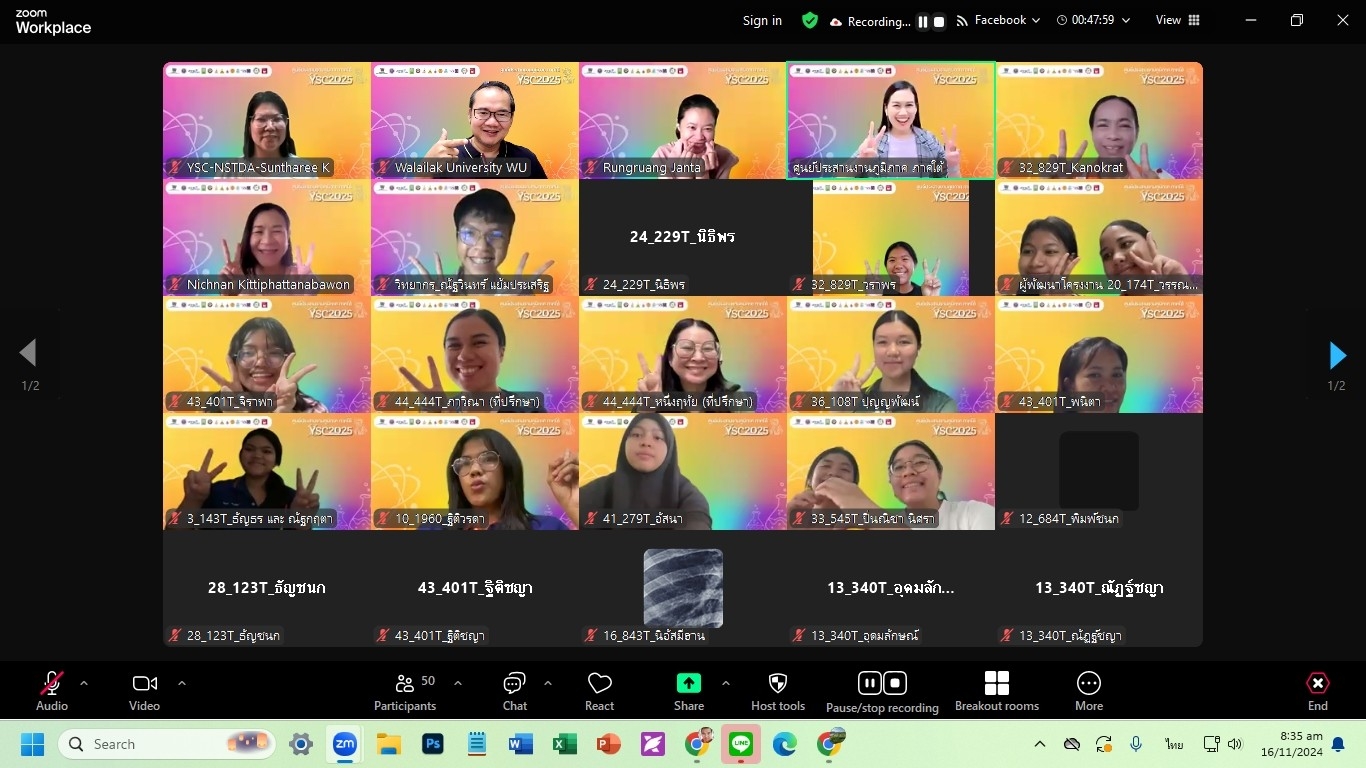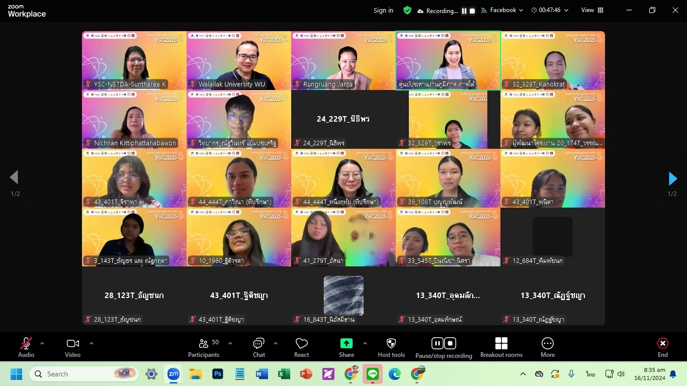 วันที่ 16 พฤศจิกายน ศูนย์บริการวิชาการ มหาวิทยาลัยวลัยลักษณ์ ในฐานะศูนย์ประสานงานภูมิภาค ภาคใต้ โครงการการประกวดโครงงานของนักวิทยาศาสตร์รุ่นเยาว์ ครั้งที่ 27 (Young Scientist Competition: YSC 2025) จัดกิจกรรมให้แก่น้อง ๆ นักเรียนผู้พัฒนาโครงงาน และอาจารย์ที่ปรึกษา ผู้ผ่านการพิจารณารอบคัดเลือกข้อเสนอโครงงาน จาก 48 โครงงาน จาก 20 โรงเรียนทั่วภาคใต้ประกอบด้วย