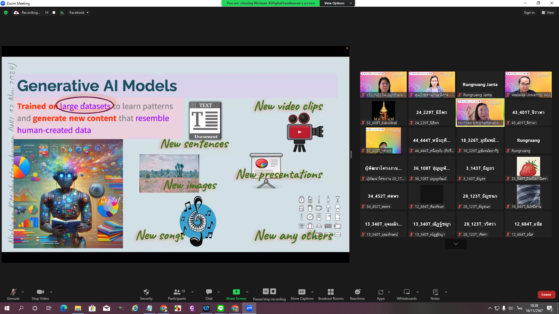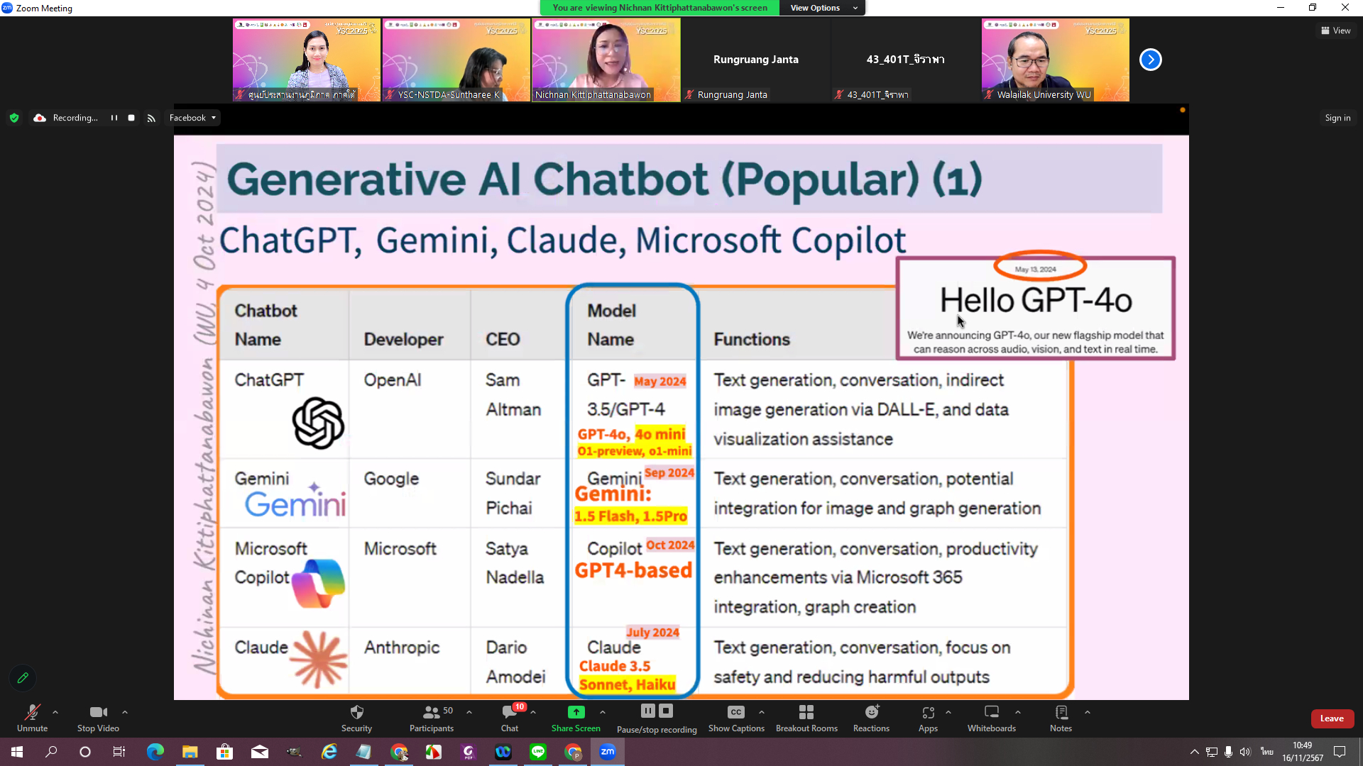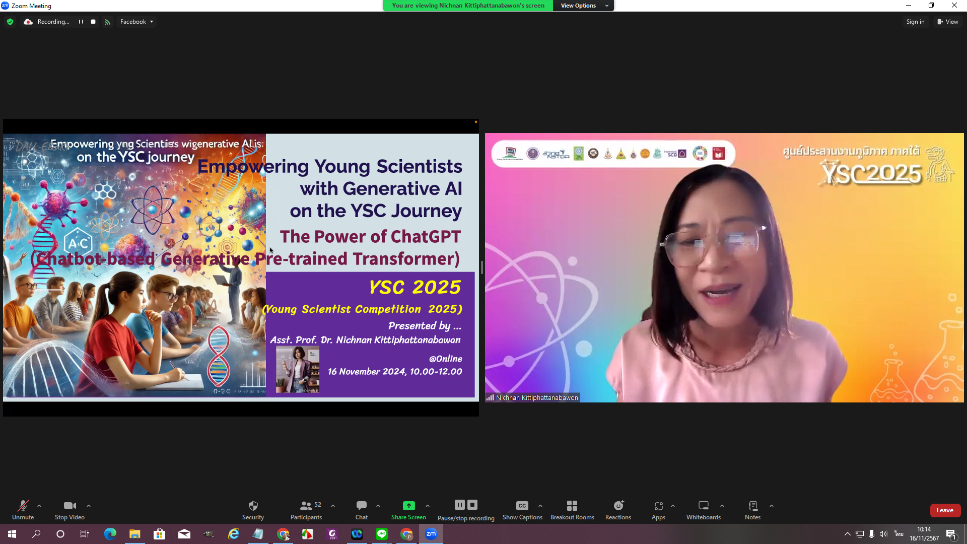2.กิจกรรมบรรยาย หัวข้อ: Empowering Young Scientists with Generative AI on The YSC Journey เสริมพลังนักวิทยาศาสตร์รุ่นเยาว์ด้วย Generative AI บนเส้นทาง YSC โดย ผศ.ดร.ณิชนันทน์ กิตติพัฒนบวร ผู้ช่วยอธิการบดี/ อาจารย์ประจำสำนักวิชาสารสนเทศศาสตร์ มหาวิทยาลัยวลัยลักษณ์