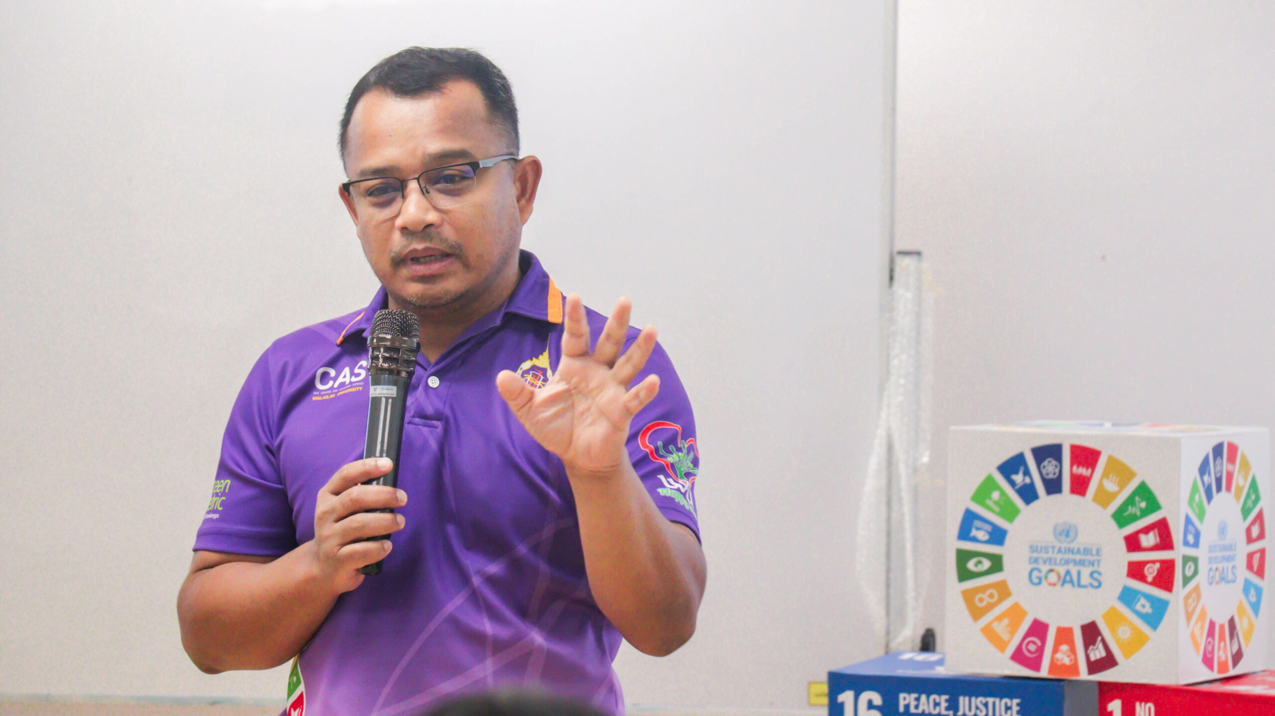 วันที่ 15 สิงหาคม 2568 ศูนย์บริการวิชาการ มหาวิทยาลัยวลัยลักษณ์ นำโดยผู้ช่วยศาสตราจารย์ ดร.อมรศักดิ์ สวัสดี ผู้อำนวยการศูนย์บริการวิชาการ จัดกิจกรรมอบรมเชิงปฏิบัติการ SDG Workshop “การขับเคลื่อนองค์กรสู่เป้าหมายการพัฒนาที่ยั่งยืน”  แก่บุคลากรภายในหน่วยงาน ณ ห้องประชุม SDG อาคารวิจัย ชั้น 1 มหาวิทยาลัยวลัยลักษณ์ โดยมีกิจกรรมส่งเสริมความรู้ความเข้าใจเกี่ยวกับเป้าหมายการพัฒนาที่ยั่งยืน และกระตุ้นให้เกิดการลงมือปฏิบัติเพื่อบรรลุเป้าหมายการพัฒนาที่ยั่งยืน โดยอาจมีเนื้อหาและการดำเนินกิจกรรมที่หลากหลาย เช่น การบรรยายให้ความรู้ การทำกิจกรรมกลุ่ม การระดมความคิด การนำเสนอโครงการ หรือการสร้างสรรค์นวัตกรรมที่เกี่ยวข้องกับ SDGs