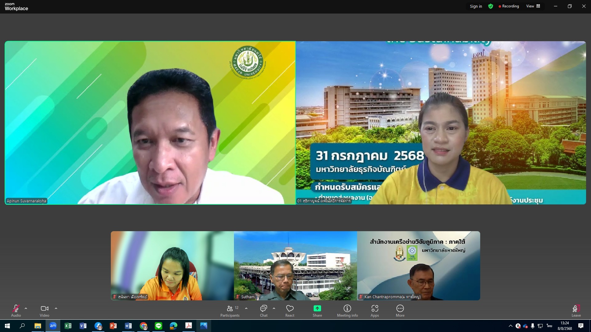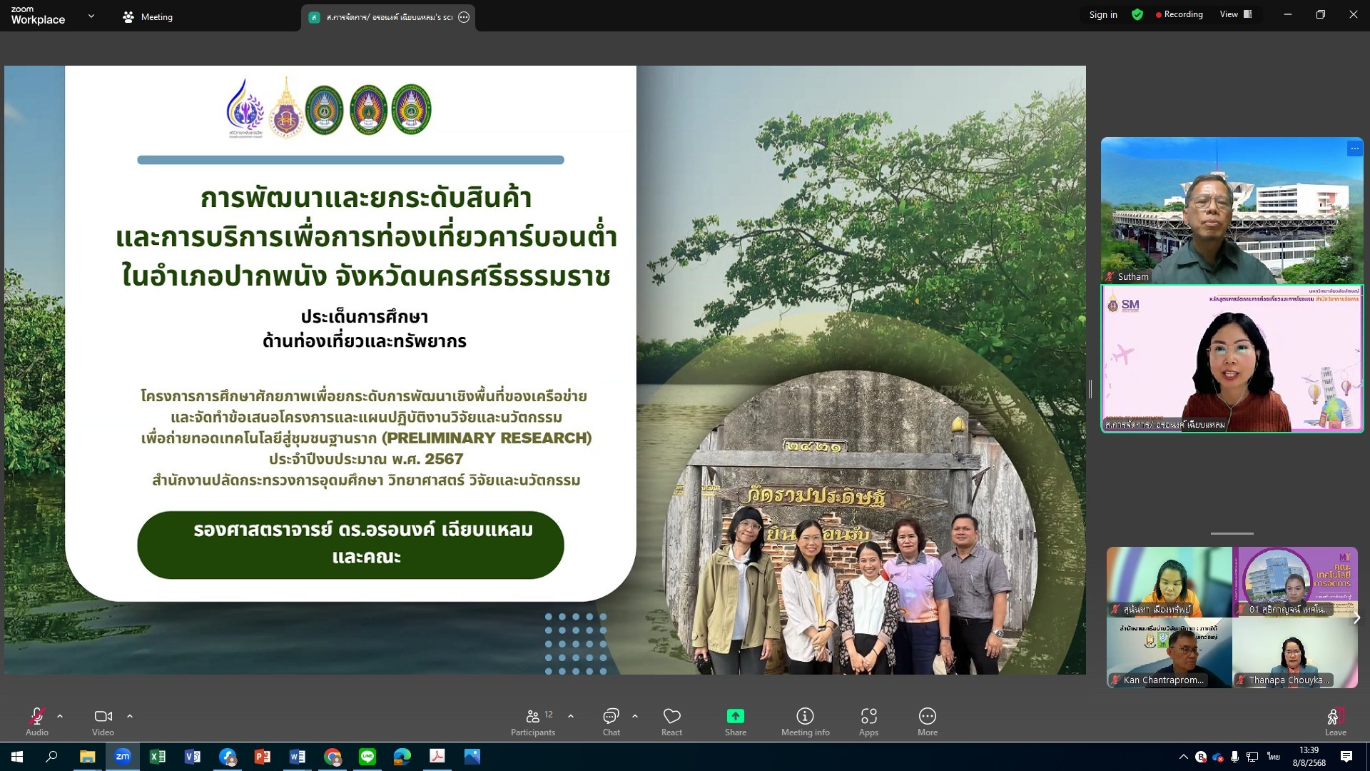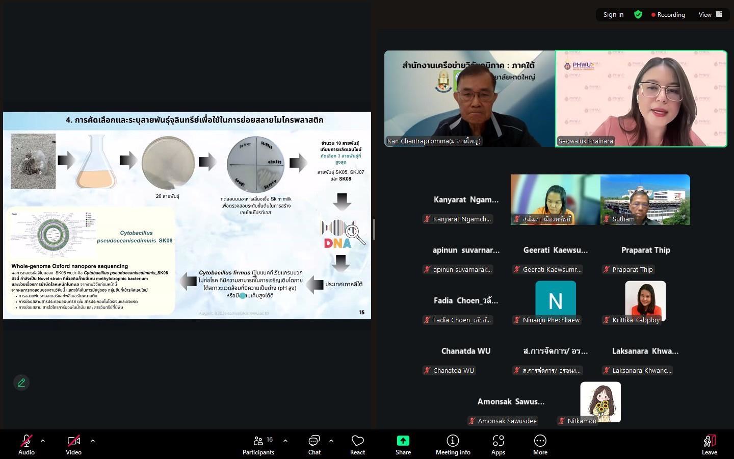 เมื่อวันที่ 8 สิงหาคม 2568 ผู้ช่วยศาสตราจารย์ ดร.อมรศักดิ์ สวัสดี ผู้อำนวยการศูนย์บริการวิชาการ มหาวิทยาลัยวลัยลักษณ์ ได้กล่าวเปิดกิจกรรมนำเสนอปิดโครงการการศึกษาศักยภาพเพื่อยกระดับการพัฒนาเชิงพื้นที่ของเครือข่าย และจัดทำข้อเสนอโครงการและแผนปฏิบัติงานวิจัย (Preliminary Research) ปีงบประมาณ พ.ศ. 2566 และ 2567 ภายใต้การดำเนินงานเครือข่ายบริหารการวิจัยภาคใต้ตอนบน ขึ้นในวันศุกร์ที่ 8 สิงหาคม 2567 ผ่านระบบ Zoom Meeting ในนามประธานเครือข่ายเครือข่ายบริหารการวิจัยภาคใต้ตอนบน ผู้รับผิดชอบงานโครงการเครือข่ายฯ ในปีงบประมาณ พ.ศ.2566 และ 2567 โดยมีสมาชิกสถาบันอุดมศึกษาภายในเครือข่ายภาคใต้ตอนบน จำนวน 12 สถาบัน ได้แก่ 1) มรภ.สุราษฎธานี 2) มรภ.นครศรีธรรมราช 3) มรภ.ภูเก็ต 4) ม.อ. วิทยาเขตสุราษฎร์ธานี 5) ม.วลัยลักษณ์ 6) ม.ตาปี 7) ม.แม่โจ้-ชุมพร 8) สจล. วิทยาเขตชุมพร 9) มทร.ศรีวิชัย วิทยาเขตนรคศรีธรรมราช 10) วิทยาลัยชุมชนพังงา 11) วิทยาเทคโนโลยีภาคใต้ 12) วิทยาลัยชุมชนระนอง ซึ่งดำเนินงานครอบคลุมพื้นที่ภาคใต้ตอนบน 7 จังหวัด (นครศรีธรรมราช, สุราษฎร์ธานี, ชุมพร, ระนอง, กระบี่, พังงา และภูเก็ต) ได้กำหนด