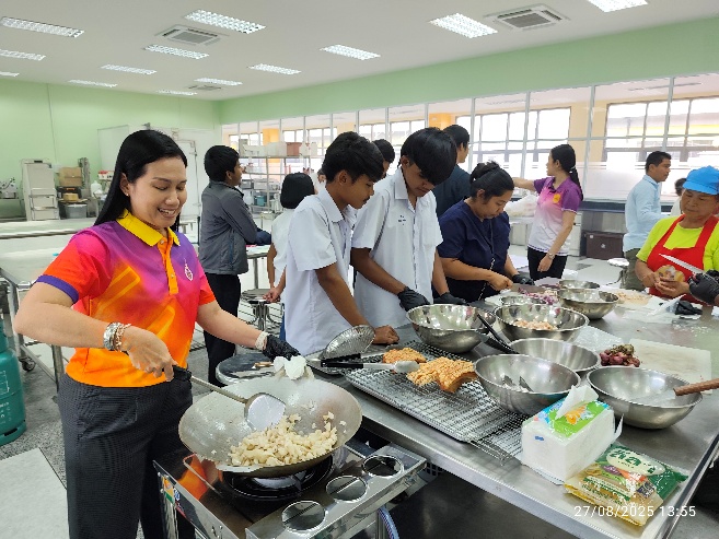 เมื่อวันที่ 27 สิงหาคม 2568 มหาวิทยาลัยวลัยลักษณ์ นำโดย ผศ.ดร.กฤติกา กาบพลอย และ ผศ.ดร.ทนง เอี่ยวศิริ สำนักวิชาเทคโนโลยีการเกษตรและอุตสาหกรรมอาหาร ร่วมกับ ศูนย์บริการวิชาการ ศูนย์ส่งเสริมการเรียนรู้ ตำบลหัวตะพาน และองค์การบริหารส่วนตำบลหัวตะพาน ได้จัดกิจกรรมฝึกอบรมเชิงปฏิบัติการถ่ายทอดเทคโนโลยีการแปรรูปเนื้อสุกร เป็น หมูกรอบ และน้ำพริกกากหมู เพื่อ สร้างอาชีพ สร้างมูลค่าเพิ่มให้กับผลิตภัณฑ์ชุมชน เพิ่มองค์ความรู้และทักษะการแปรรูปเนื้อสุกรเป็นเมนูอาหารอร่อยของครัวเรือนที่สามารถทำรับประทานได้เองในครัวเรือนเพื่อลดรายจ่าย ได้รสชาติที่ต้องการและสามารถนำไปสร้างอาชีพเป็นรายได้เสริมให้กับ ครัวเรือนเกษตรกรที่เลี้ยงสุกร ผู้ประกอบการร้านอาหาร รวมถึงนักเรียนนอกระบบการศึกษาจากศูนย์ส่งเสริมการเรียนรู้ในชุมชนที่สามารถนำไปต่อยอดในการประกอบอาชีพได้