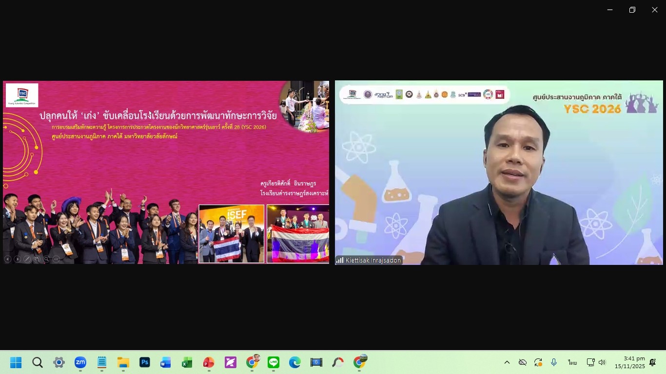 วันที่ 15 พฤศจิกายน ศูนย์บริการวิชาการ มหาวิทยาลัยวลัยลักษณ์ ในฐานะศูนย์ประสานงานภูมิภาค ภาคใต้ โครงการการประกวดโครงงานของนักวิทยาศาสตร์รุ่นเยาว์ ครั้งที่ 28 (Young Scientist Competition: YSC 2026) จัดกิจกรรมให้แก่น้อง ๆ นักเรียนผู้พัฒนาโครงงาน และอาจารย์ที่ปรึกษา ผู้ผ่านการพิจารณารอบคัดเลือกข้อเสนอโครงงาน จำนวน 48 โครงงาน จาก 18 โรงเรียนทั่วภาคใต้ประกอบด้วย