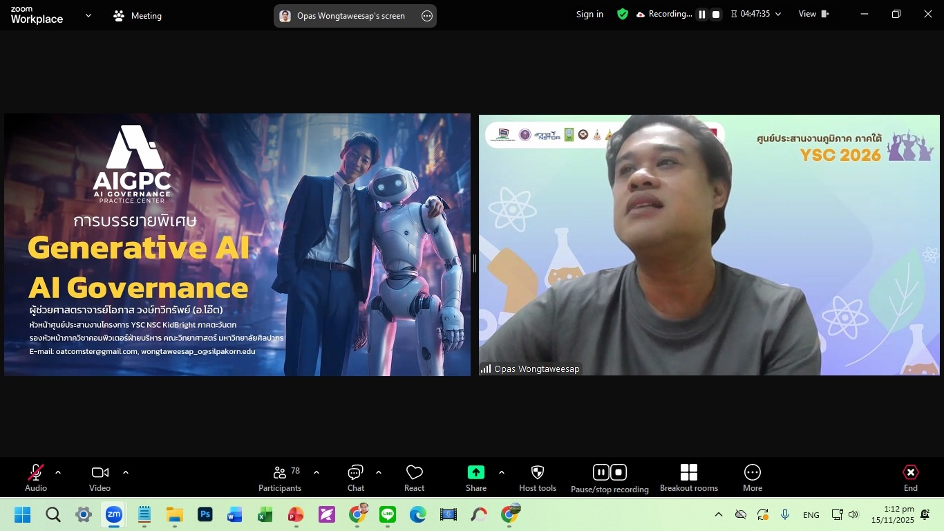 1.กิจกรรมบรรยาย หัวข้อ Generative AI and AI Governance โดย ผู้ช่วยศาสตราจารย์โอภาส วงษ์ทวีทรัพย์ ภาควิชาคอมพิวเตอร์ คณะวิทยาศาสตร์ มหาวิทยาลัยศิลปากร และหัวหน้าศูนย์ประสานงานภูมิภาค ภาคตะวันตก มหาวิทยาลัยศิลปากร