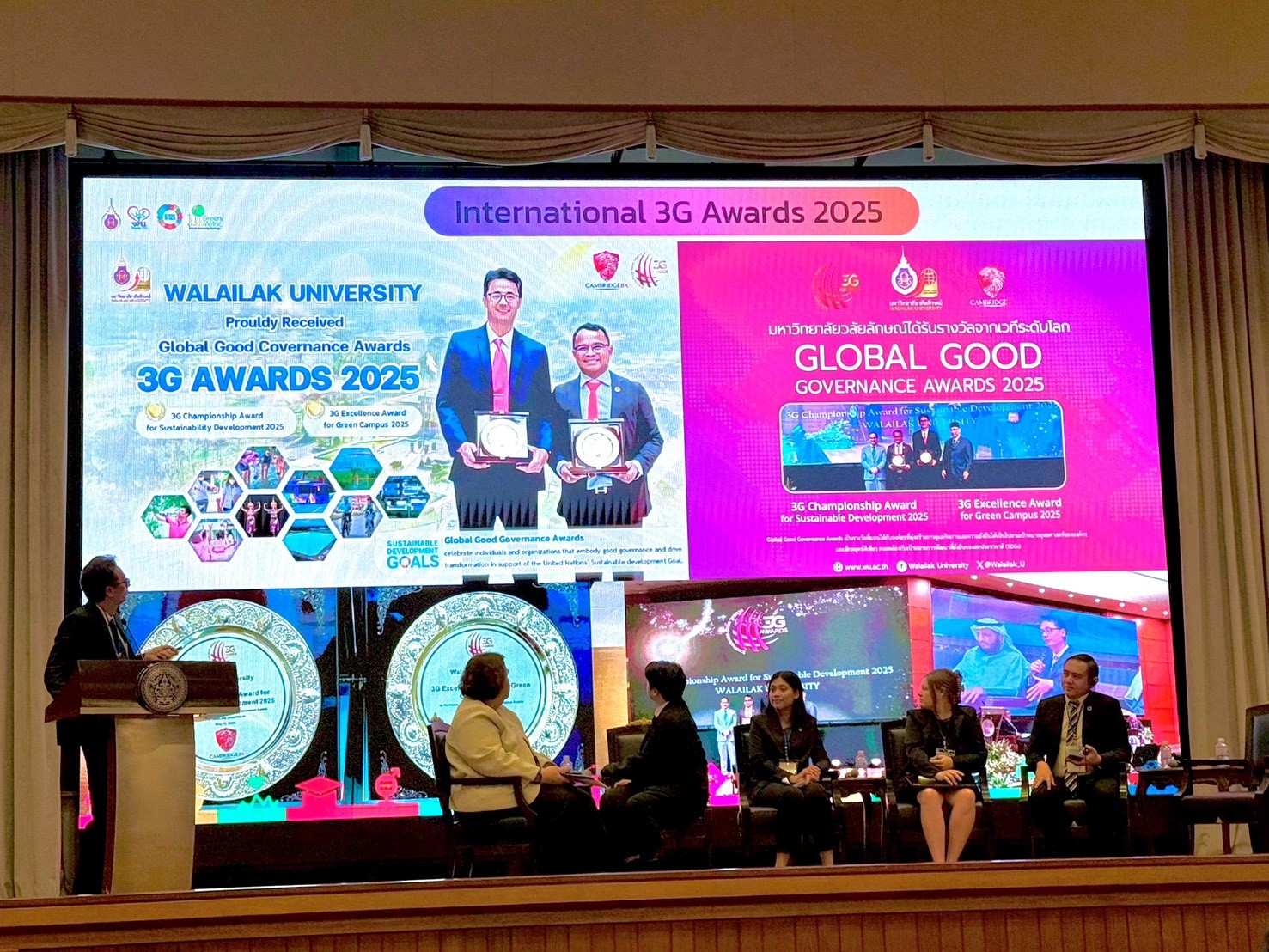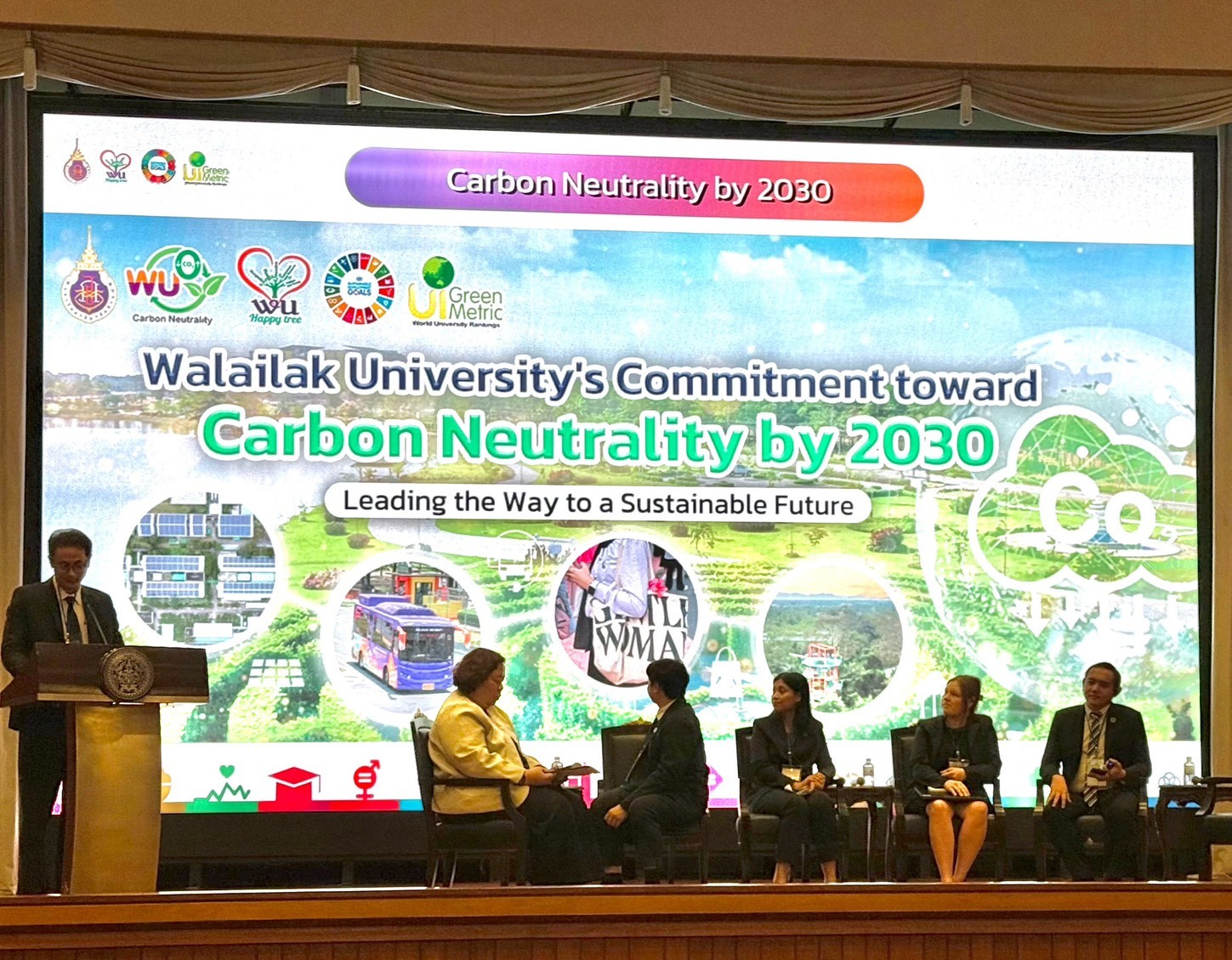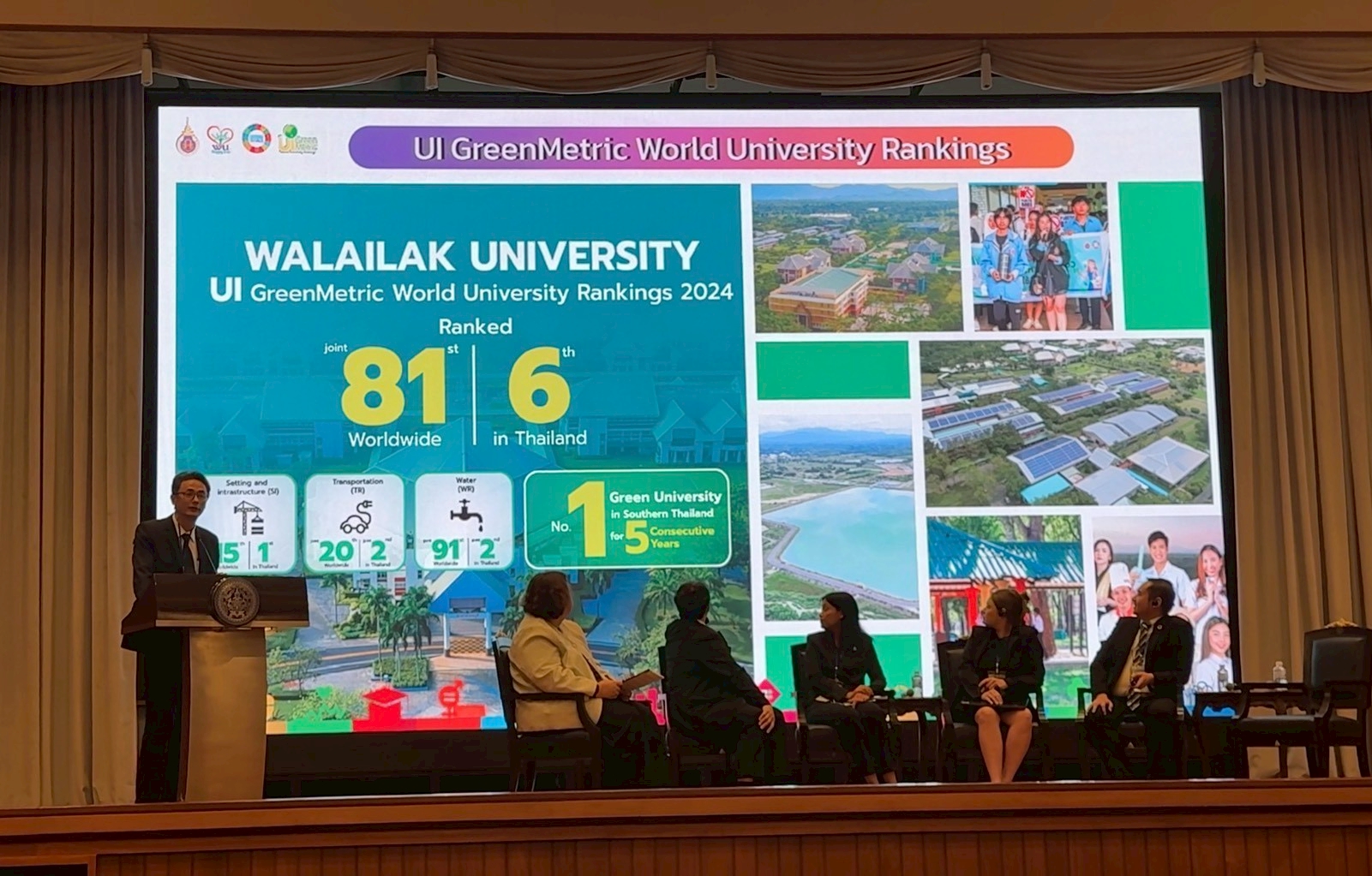 ในการประชุมครั้งนี้ รองศาสตราจารย์ ดร.วาริท เจาะจิตต์ ได้นำเสนอหัวข้อ “University Sustainability Forum: Science, Education, and Innovation for the SDGs” เวทีที่เจาะลึกบทบาทใหม่ของมหาวิทยาลัยยั่งยืนอันเป็นศูนย์กลางการเรียนรู้และขับเคลื่อนเป้าหมายการพัฒนาที่ยั่งยืน มุ่งสร้างระบบนิเวศทางวิชาการที่ส่งเสริมการเรียนรู้ข้ามศาสตร์ งานวิจัยและบริการวิชาการมุ่งสร้างผลกระทบ และความร่วมมือระหว่างมหาวิทยาลัย ทั้งระดับประเทศและนานาชาติ ผ่านการขับเคลื่อนงาน WU SDG MOBILITY การเข้าร่วมเวทีครั้งนี้สะท้อนให้เห็นถึงความโดดเด่นของมหาวิทยาลัยวลัยลักษณ์ในฐานะสถาบันอุดมศึกษาไทยที่มีบทบาทชัดเจนด้านการพัฒนาที่ยั่งยืน พร้อมทั้งตอกย้ำพันธกิจของมหาวิทยาลัยในการเป็นพลังสำคัญของสังคมในการขับเคลื่อนประเทศไทยสู่ความยั่งยืนในทุกมิติ