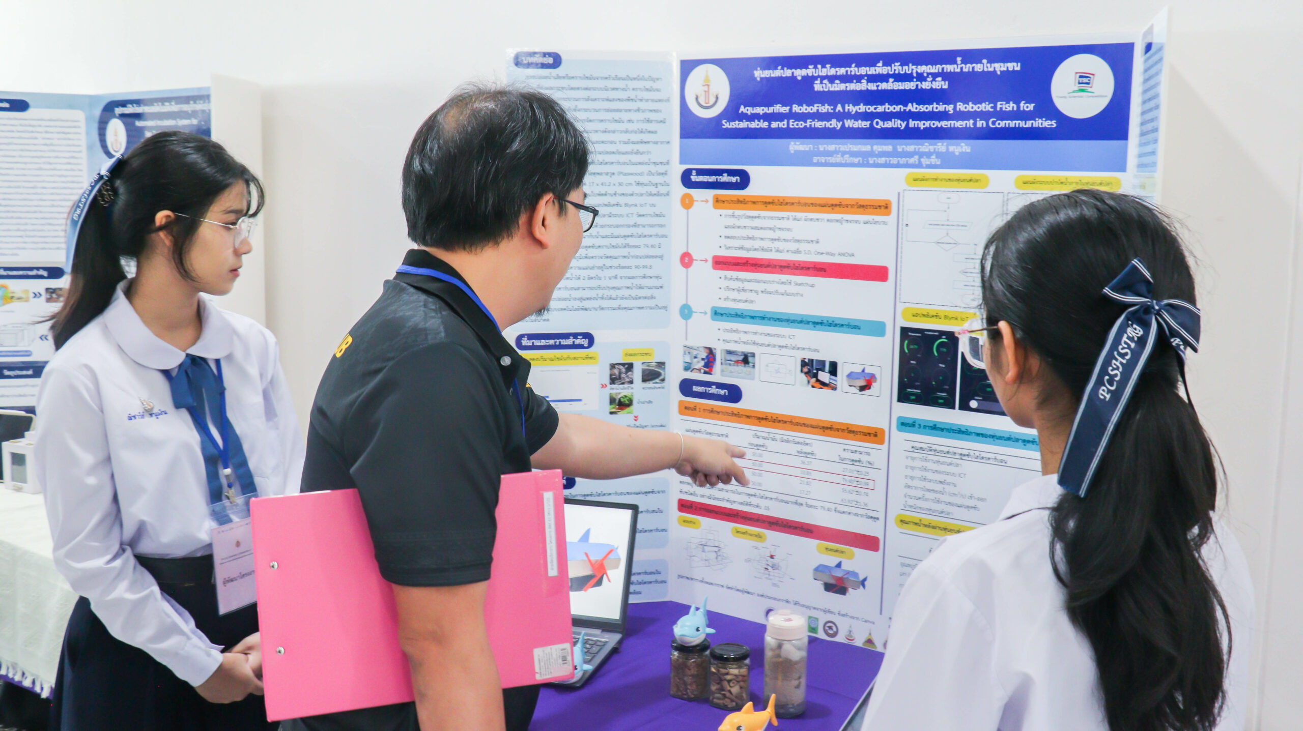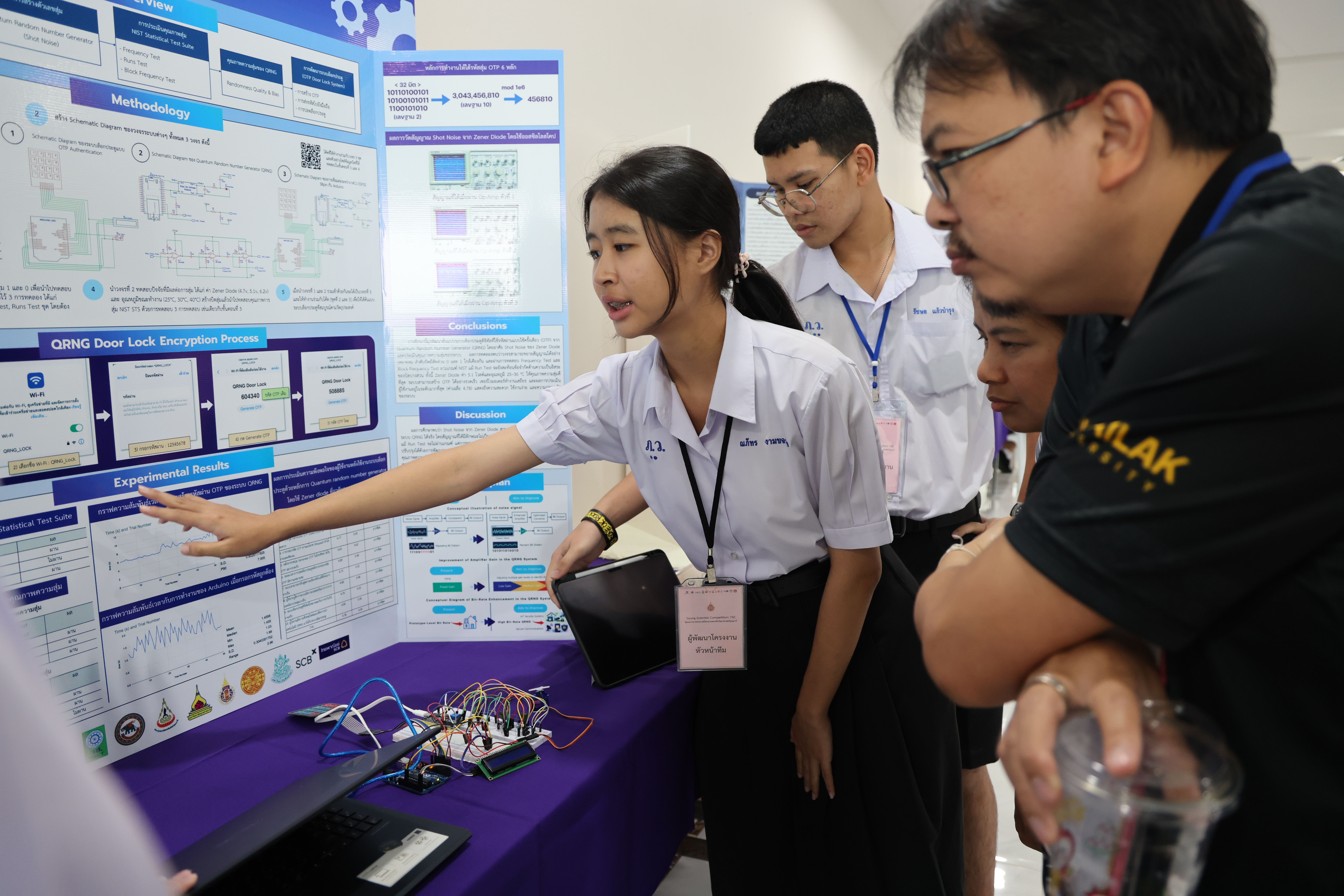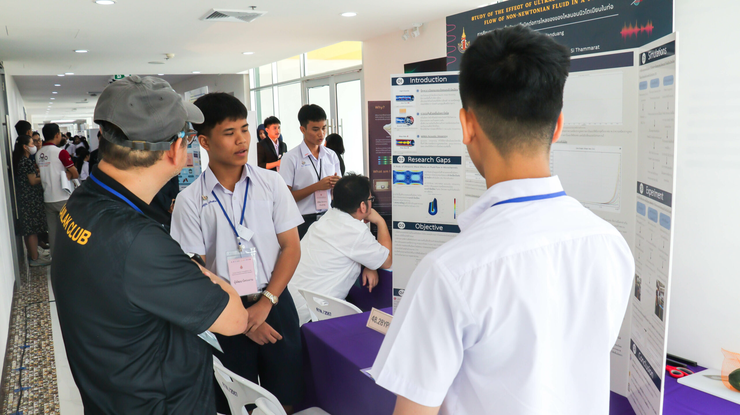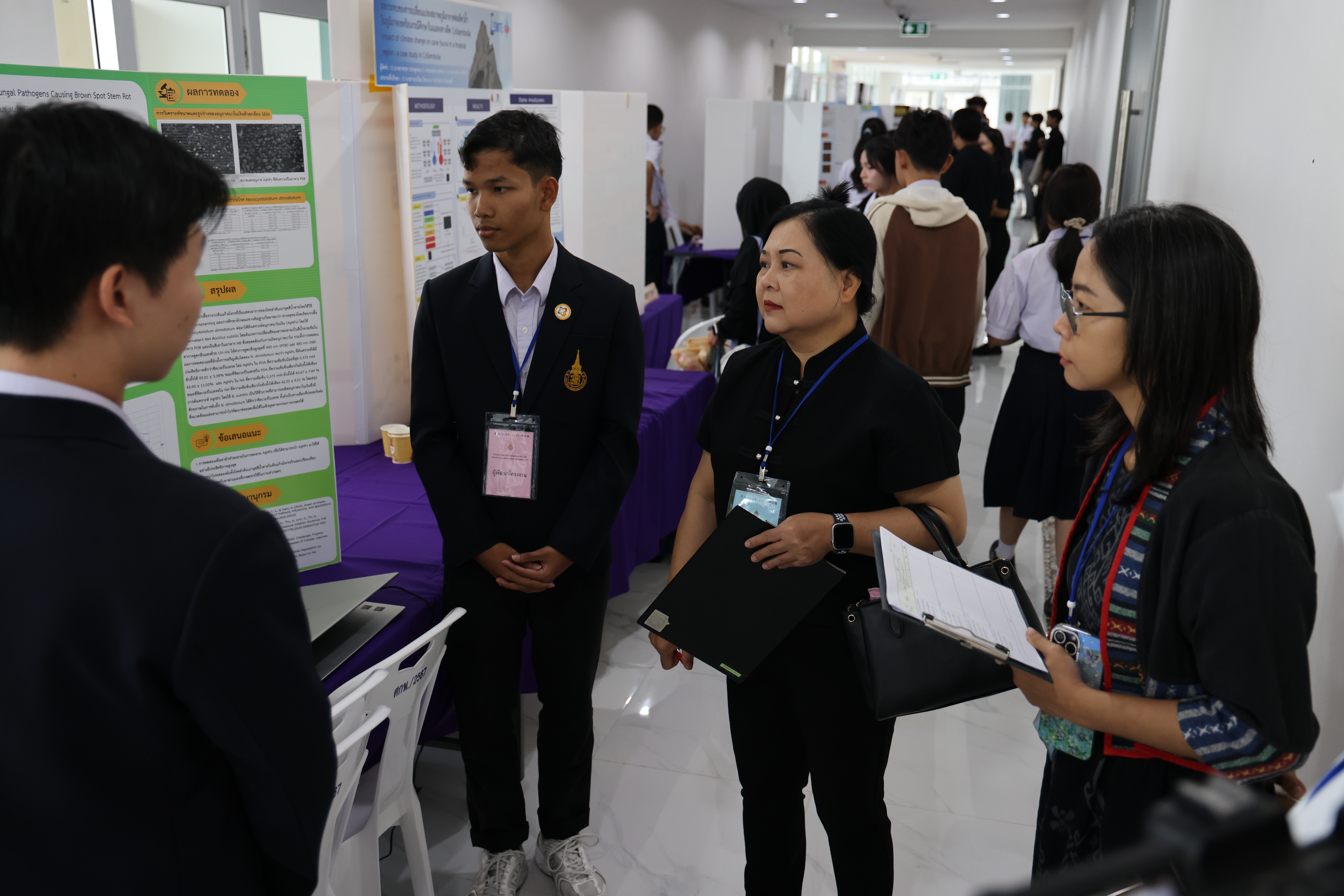 ในช่วงเช้า เวลา 09.00 – 12.00 น. ผู้พัฒนาโครงงานร่วมนำเสนอผลงาน โดยผ่านการนำเสนอผลงาน และตอบข้อซักถามจากคณะกรรมการฝ่ายตัดสินการประกวดโครงงานจากมหาวิทยาลัยวลัยลักษณ์ จำนวน 35 ท่าน ประกอบด้วยสาขา  9 สาขา โดยมีโครงงานที่ผ่านการคัดเลือกเพื่อรับทุนสนับสนุนจำนวน 44 โครงงาน จาก 9 สาขา และจาก 18 โรงเรียนทั่วภาคใต้