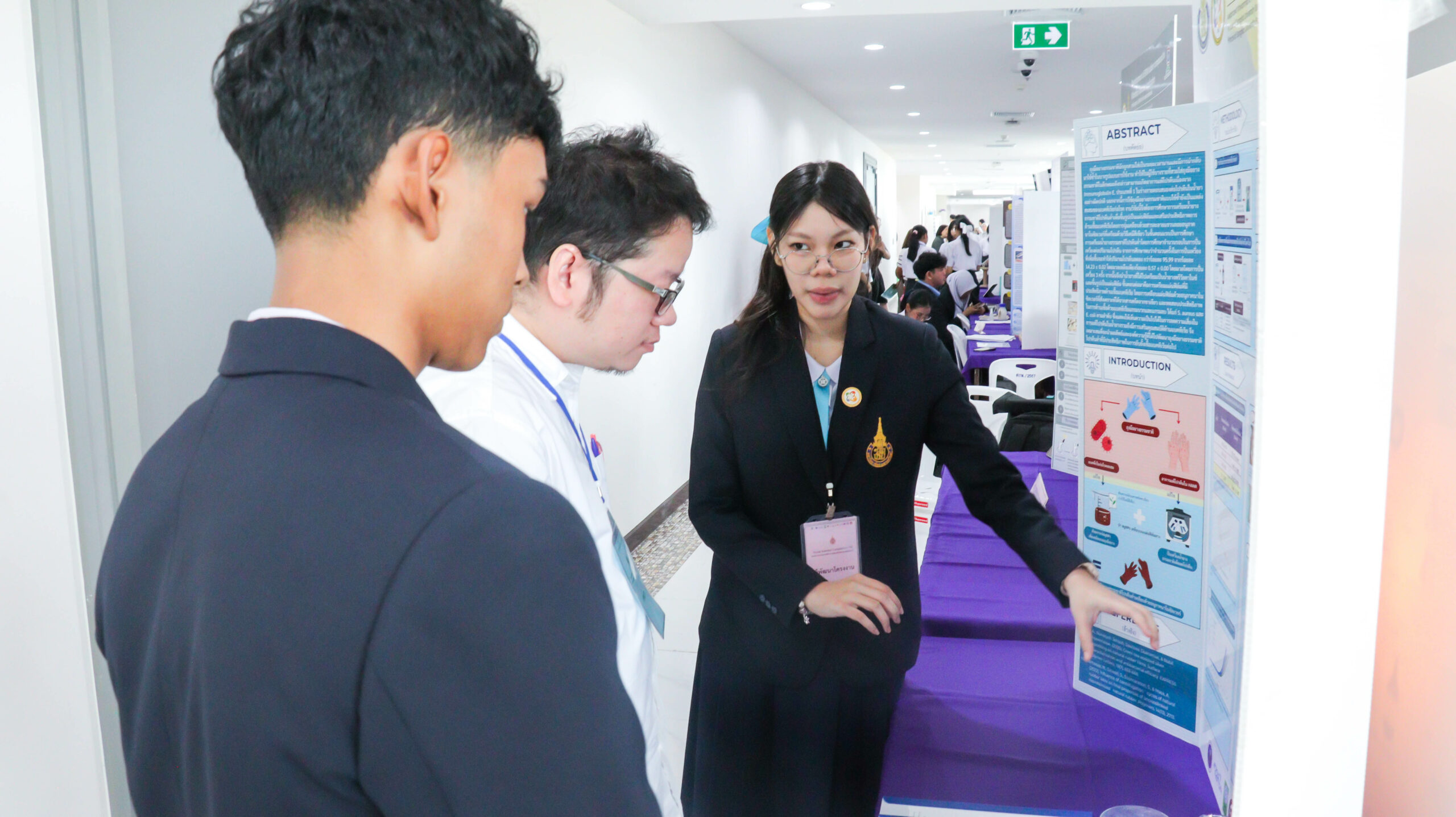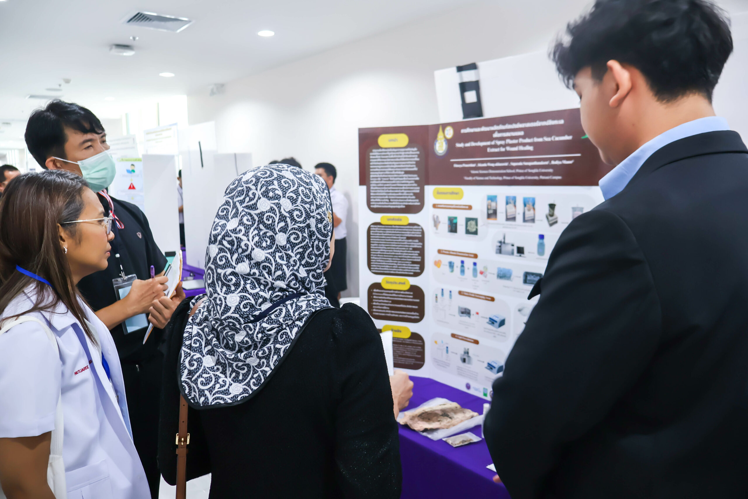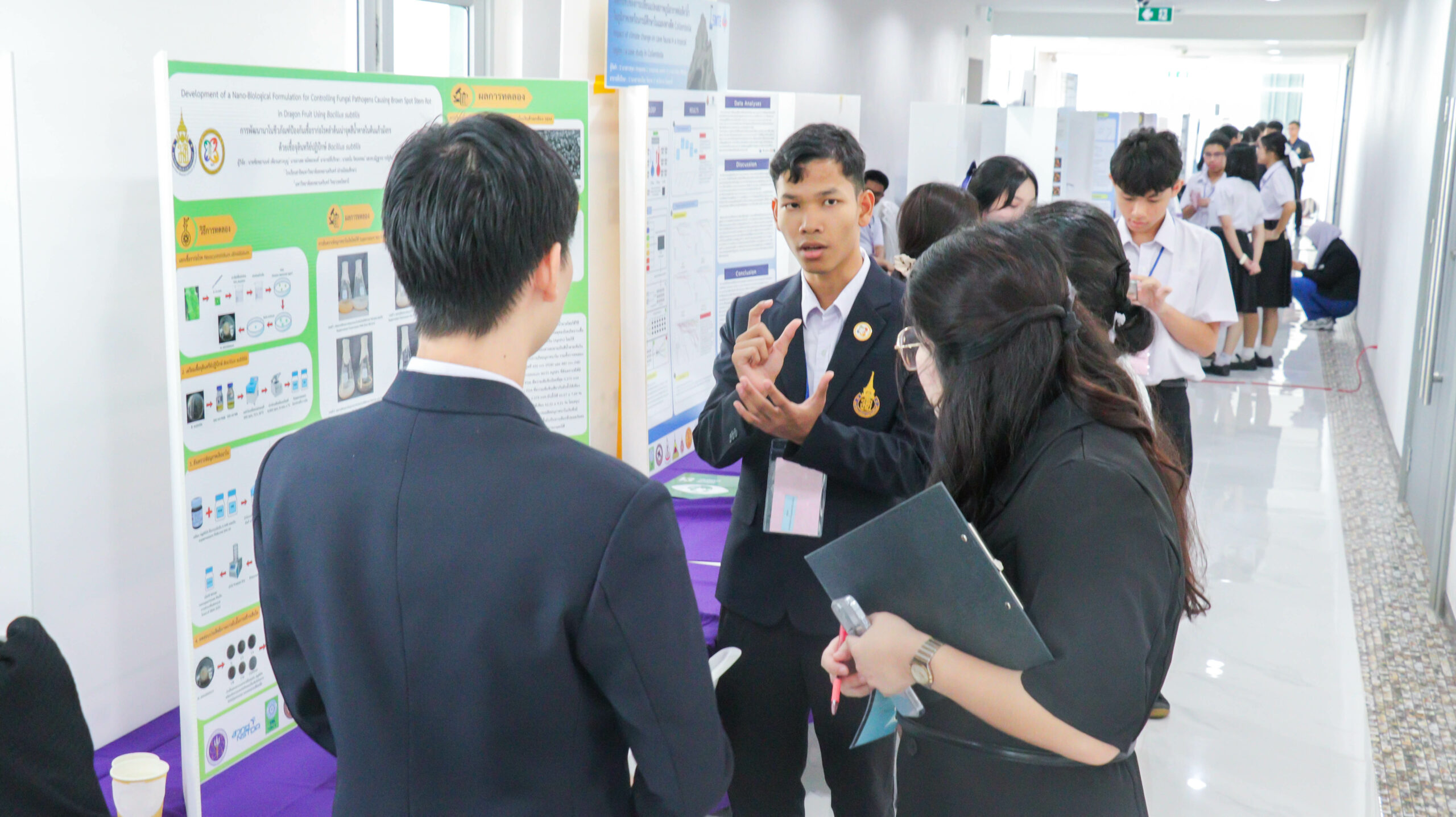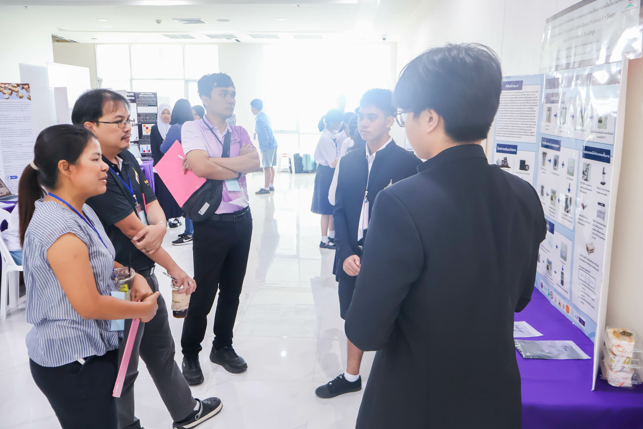 ในช่วงเช้า เวลา 09.00 – 12.00 น. ผู้พัฒนาโครงงานร่วมนำเสนอผลงาน โดยผ่านการนำเสนอผลงาน และตอบข้อซักถามจากคณะกรรมการฝ่ายตัดสินการประกวดโครงงานจากมหาวิทยาลัยวลัยลักษณ์ จำนวน 35 ท่าน ประกอบด้วยสาขา  9 สาขา โดยมีโครงงานที่ผ่านการคัดเลือกเพื่อรับทุนสนับสนุนจำนวน 44 โครงงาน จาก 9 สาขา และจาก 18 โรงเรียนทั่วภาคใต้