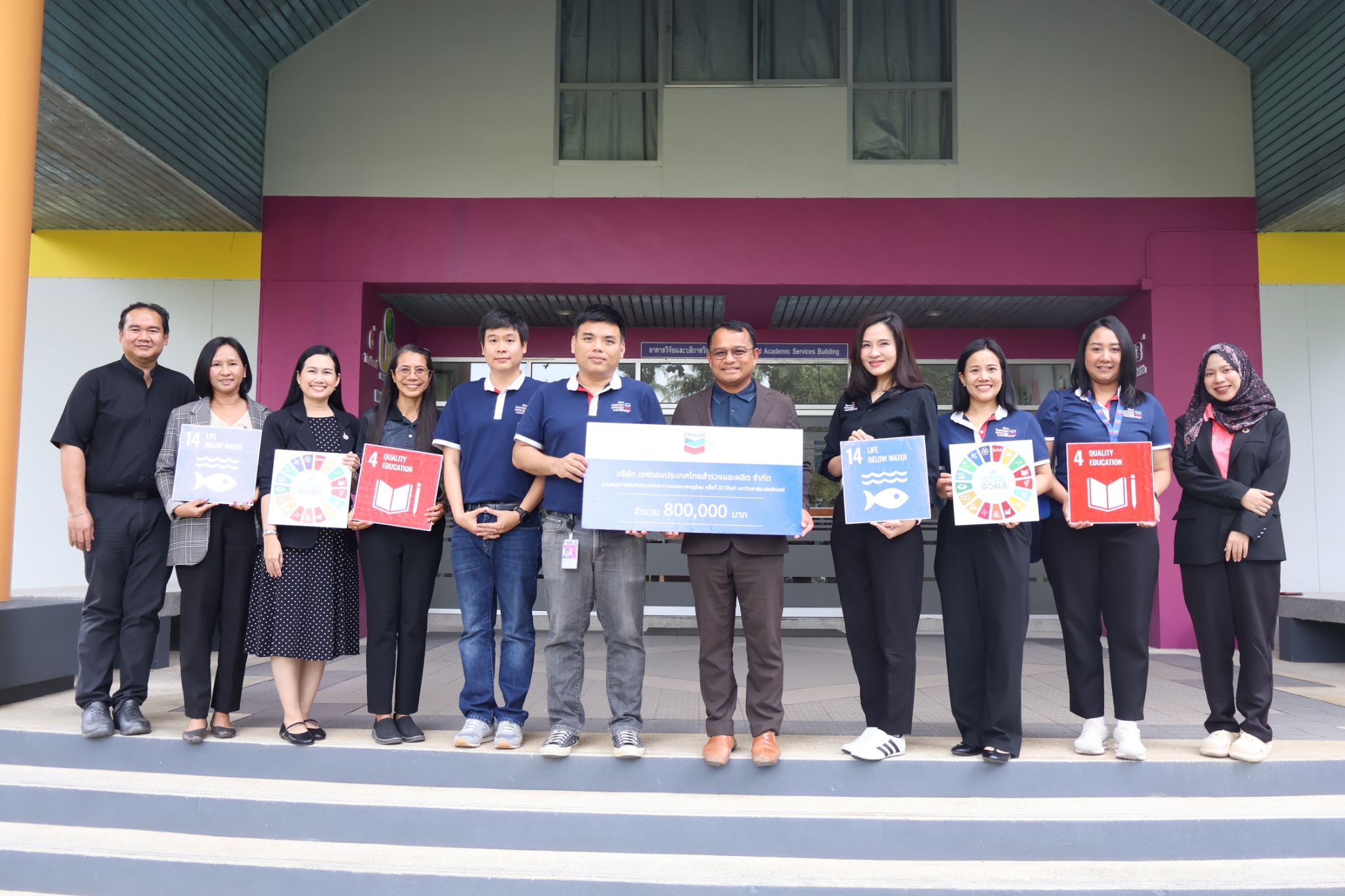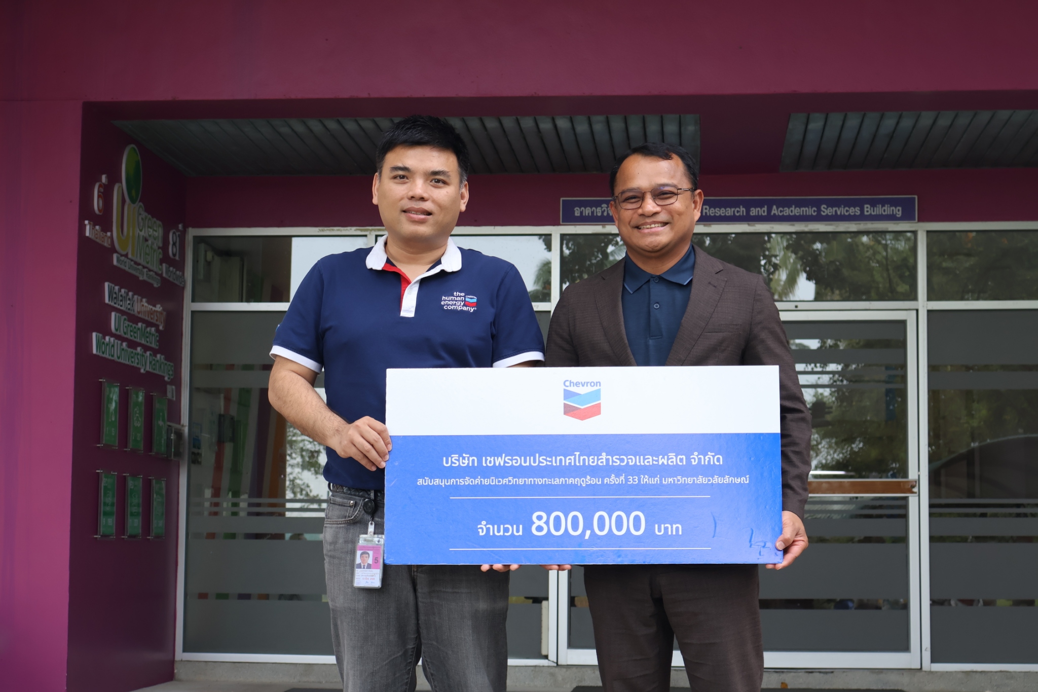 เมื่อวันที่ 11 กุมภาพันธ์ 2569 ศูนย์บริการวิชาการ มหาวิทยาลัยวลัยลักษณ์ โดยผู้ช่วยศาสตราจารย์ ดร.อมรศักดิ์ สวัสดี ผู้อำนวยการศูนย์บริการวิชาการ ร่วมรับมอบงบประมาณสนันสนุนการดำเนินโครงการค่ายนิเวศวิทยาทางทะเล ครั้งที่ 33 จำนวน 800,000 บาท จากบริษัท เชฟรอนประเทศไทยสำรวจและผลิต จำกัด ได้รับเกียรติจาก คุณปิยนัยน์ กลิ่นน้อย ผู้จัดการศูนย์ขนส่งทางอากาศนครศรีธรรมราช คุณทิพย์วดี ไทยศิริ ผู้จัดการฝ่ายรัฐกิจ คุณผลใหม่ จิรยิ่งพันธุ์ ผู้เชี่ยวชาญฝ่ายการบิน คุณนรเดช สายะเวสบำรุง ผู้เชี่ยวชาญฝ่ายการบิน และคุณวัลชิณี สุขดำเกิง ผู้ประสานงานอาวุโส ฝ่ายกิจการองค์กร ร่วมเป็นตัวแทนผู้บริหารส่งมอบงบประมาณสนับสนุนการดำเนินโครงการค่ายนิเวศวิทยาทางทะเล ครั้งที่ 33 ณ ศูนย์บริการวิชาการ อาคารวิจัย มหาวิทยาลัยวลัยลักษณ์