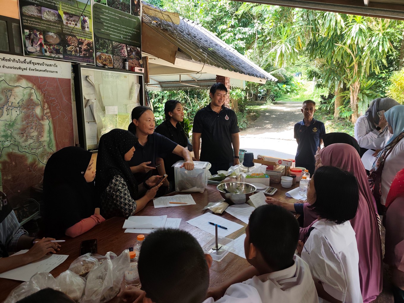 เมื่อวันที่ 12 กุมภาพันธ์ 2569 ผศ.ดร.ทนง เอี่ยวศิริ สำนักวิชาเทคโนโลยีการเกษตรและอุตสาหกรรมอาหาร และทีมงานจากศูนย์บริการวิชาการ จัดกิจกรรมฝึกอบรมเชิงปฏิบัติการ การพัฒนาคุณภาพผลิตภัณฑ์แปรรูปอาหารจากกระวาน ของชุมชนบ้านเขาวัง ตำบลหินตก อำเภอร่อนพิบูลย์ จังหวัดนครศรีธรรมราช โดยมีผู้เข้าร่วมกิจกรรมจำนวน 30 คน จากวิสาหกิจชุมชนกลุ่มกระวานบ้านเขาวัง ครูและนักเรียนโรงเรียนตำรวจตระเวนชายแดนบ้านเขาวัง มีวัตถุประสงค์เพื่อพัฒนาคุณภาพน้ำพริกกระวานของชุมชน ที่มักประสบปัญหาเชื้อรา ไม่สามารถเก็บไว้รับประทานได้นาน จึงได้พัฒนาสูตรน้ำพริกกระวานให้สามารถเก็บรักษาได้นานยิ่งขึ้นทั้งในช่วงขนส่งและหลังการเปิดกระปุกรับประทาน ซึ่งเป็นการพัฒนาขั้นตอนกระบวนการทำอย่างง่ายที่สมาชิกกลุ่มสามารถดำเนินการได้ด้วยตนเอง นำมาถ่ายทอดให้กับสมาชิกได้เรียนรู้และเข้าใจกระบวนการทำน้ำพริกด้วยการลงมือปฏิบัติจริง เพื่อให้ได้น้ำพริกกระวานที่ได้คุณภาพและยังคงรสชาดที่เป็นเอกลักษณ์เฉพาะของกระวาน ซึ่งพืชเด่นของท้องถิ่นที่เป็นวัตถุดิบหลักของชุมชน ที่ชุมชนต้องการสร้างอัตลักษณ์อันโดดเด่นให้กับผลิตภัณฑ์ของฝากจากชุมชนบ้านเขาวัง เพื่อสร้างมูลค่าเพิ่มให้กับผักพื้นบ้านของชุมชน อันจะเป็นการสร้างอาชีพและรายได้เสริมจากการทำการเกษตรของชุมชนที่จะสามารถสร้างความมั่นคงและยั่งยืนในการดำเนินชีวิตมากยิ่งขึ้น