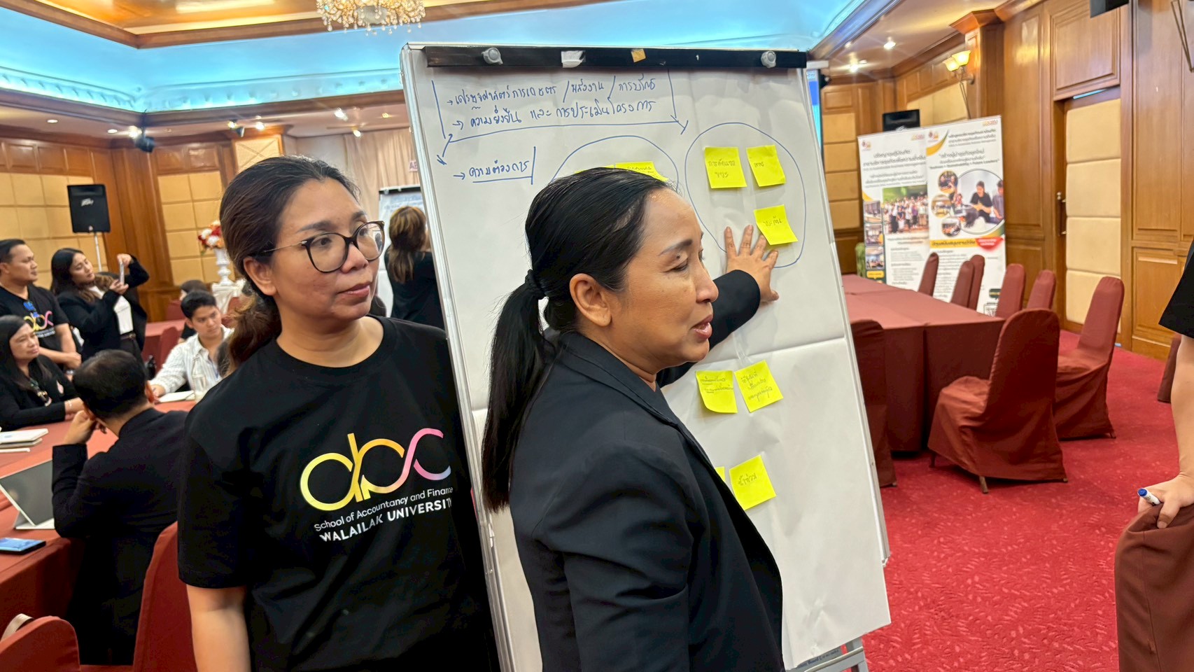 การจัดโครงการครั้งนี้ ยังทำให้เห็นถึงความเชี่ยวชาญของคณาจารย์และทีมสนับสนุน ที่สามารถดึงดูดภาคธุรกิจให้มาร่วมสะท้อนปัญหาและความต้องการ จนเกิดเป็นโจทย์วิจัยและวิชาการรับใช้สัง (Engagement) ที่มีผู้ใช้ประโยชน์รองรับจริง ภาพความสำเร็จที่น่าประทับใจที่สุดของงาน คือการได้เห็นพลังแห่งเครือข่าย ที่ไม่ได้จบลงแค่ในห้องประชุม แต่มีการรวมกลุ่มกันอย่างคึกคักตามความสนใจเฉพาะด้าน (Focus Group) เพื่อเจาะลึกแนวทางการทำงานร่วมกัน โดยแต่ละกลุ่มต่างแลกเปลี่ยนเบอร์ติดต่อและนัดหมายวันเวลาเพื่อลงรายละเอียดงานในพื้นที่กันอย่างทันท่วงที สะท้อนถึงความมุ่งมั่นที่จะขับเคลื่อนงานพัฒนาชุมชนให้เกิดขึ้นได้จริงในอนาคตอันใกล้
