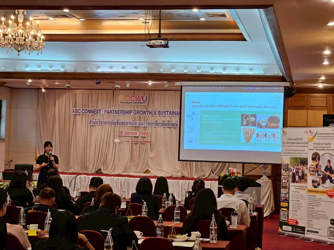 ภายในงานได้รับเกียรติจาก รศ.ดร.กฤษฎา เสกตระกูล กรรมการสภามหาวิทยาลัยวลัยลักษณ์ ร่วมกับวิทยากรจาก CIRCO Hub Thailand บรรยายพิเศษในหัวข้อ “บทนำเศรษฐกิจแบบวงกลมและความยั่งยืน” ซึ่งเป็นการอัปเดตองค์ความรู้ด้าน ESG และ Circular Economy จากผู้เชี่ยวชาญที่มีประสบการณ์ตรง ช่วยให้ผู้เข้าร่วมเห็นภาพการปรับตัวของธุรกิจในยุคปัจจุบันได้อย่างชัดเจน