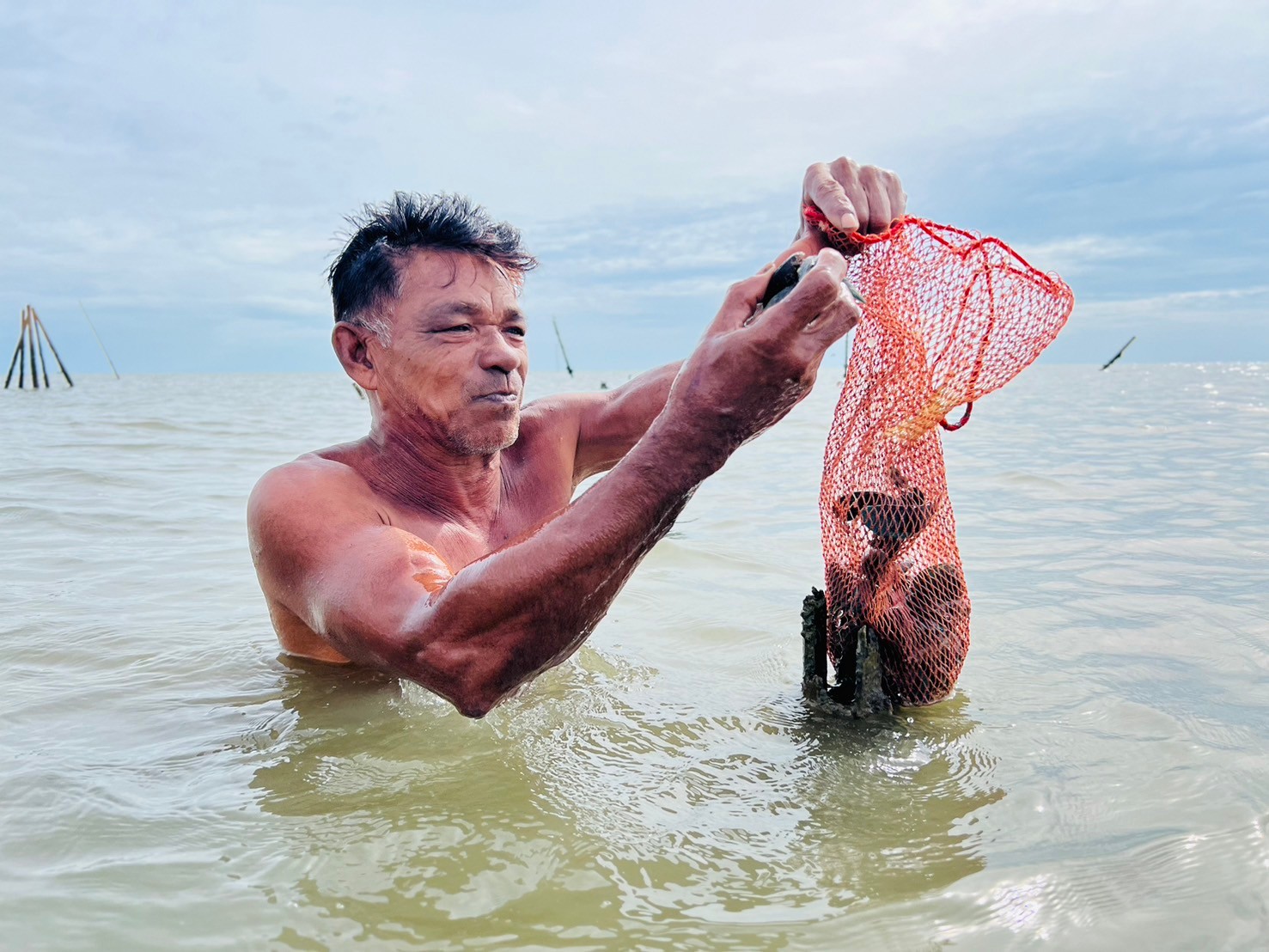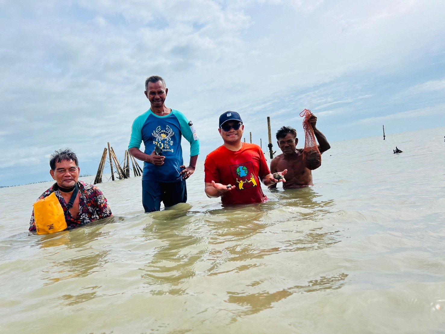 Additionally, Director Amonsak and the network jointly assessed the health of marine species around artificial fish habitats, evaluated the potential of the bank as a pilot model for marine resource conservation, and developed strategies for identifying conservation and rehabilitation zones for clams and Dog Conch. These activities are part of the project “Blue Swimming Crab Banks: The Key Factors in Inclusive Marine Coastal Resource Management for Sustainable Utilization,” funded by the National Research Council of Thailand (NRCT).