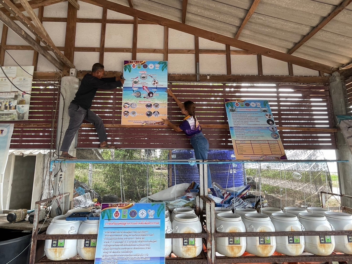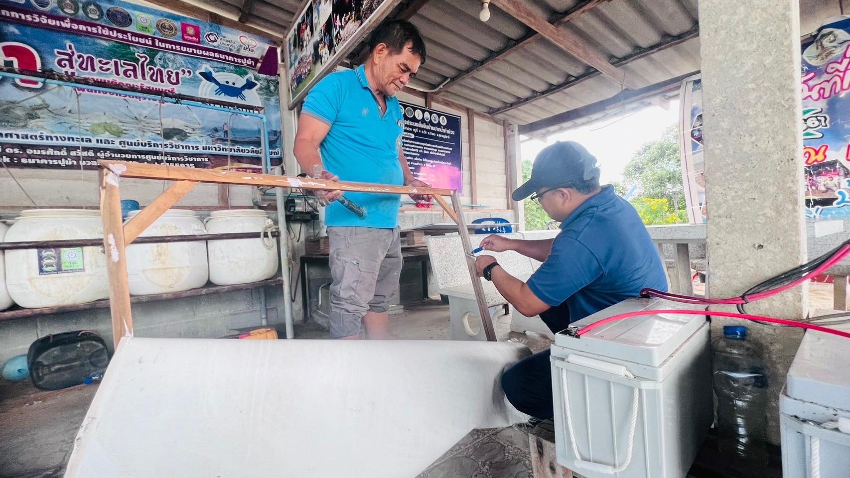 THA CHANA, SURAT THANI, 21 June 2024 – The Center for Academic Services (CAS), represented by Asst. Prof. Dr. Amonsak Sawusdee, Director of the Center for Academic Services, along with the fishermen network in Surat Thani, visited the Ban Haadsomboon Blue Swimming Crab Bank in Surat Thani to implement outreach programs in line with SDG 14: Life Below Water. The activities included monitoring the blue swimming crab bank’s progress, repairing the bank, and providing and installing informational signs related to blue swimming crabs.