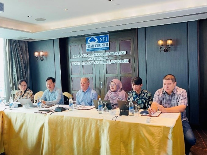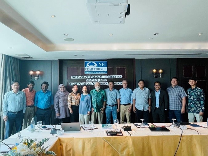 The meeting aimed to facilitate knowledge exchange and present progress updates on BSC FIP from different countries across Asia. Representatives from Sri Lanka, India, Vietnam, Indonesia, and Thailand shared updates. The meeting also discussed future directions for NFI Crab Council’s support of blue swimming crab FIPs, with Thailand highlighting the expansion of the FIP area from Surat Thani Province to Nakhon Si Thammarat and Chumphon. This expansion aims to ensure sustainable management of blue swimming crab resources.