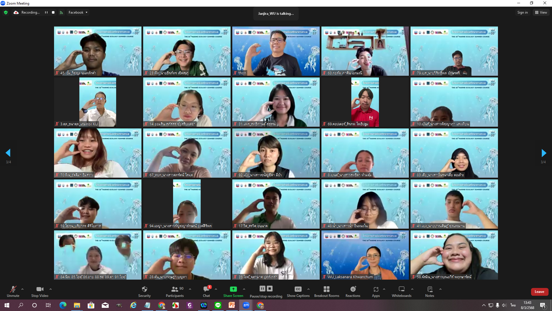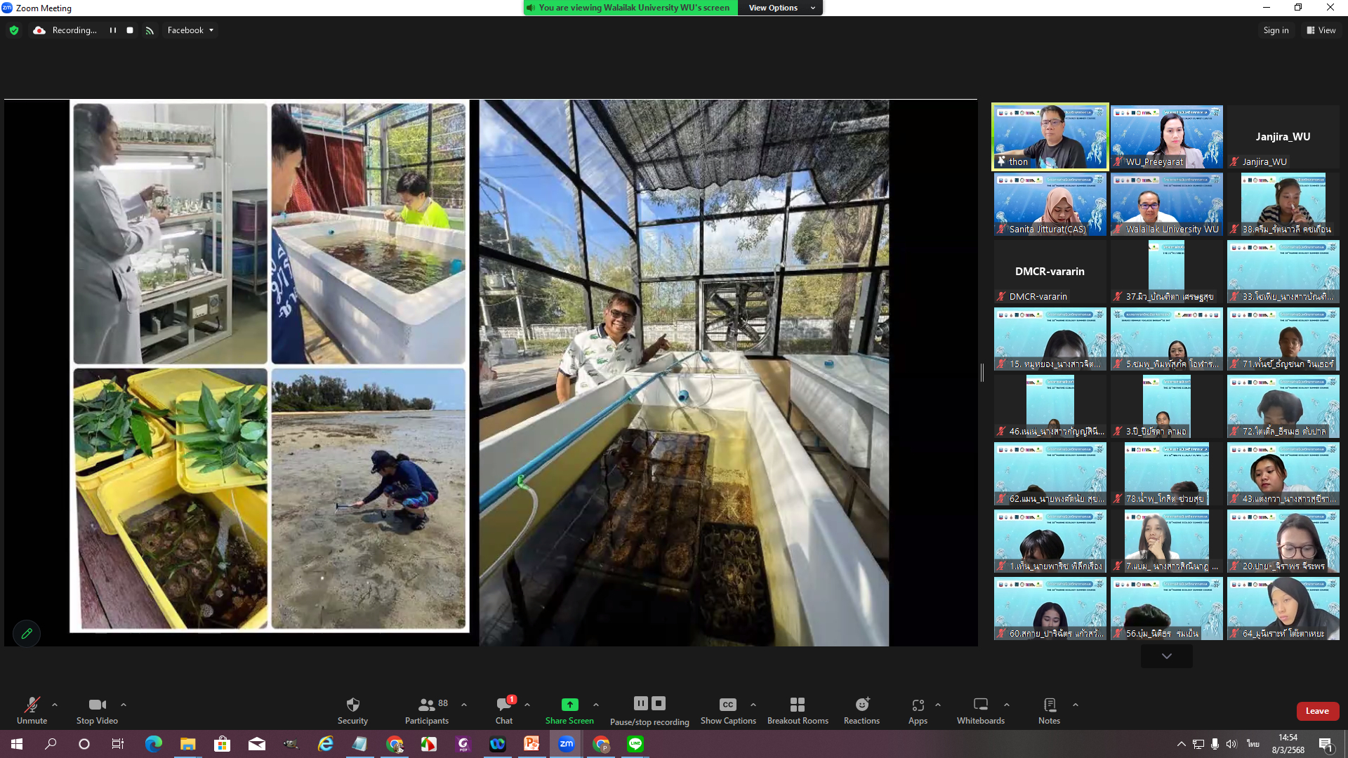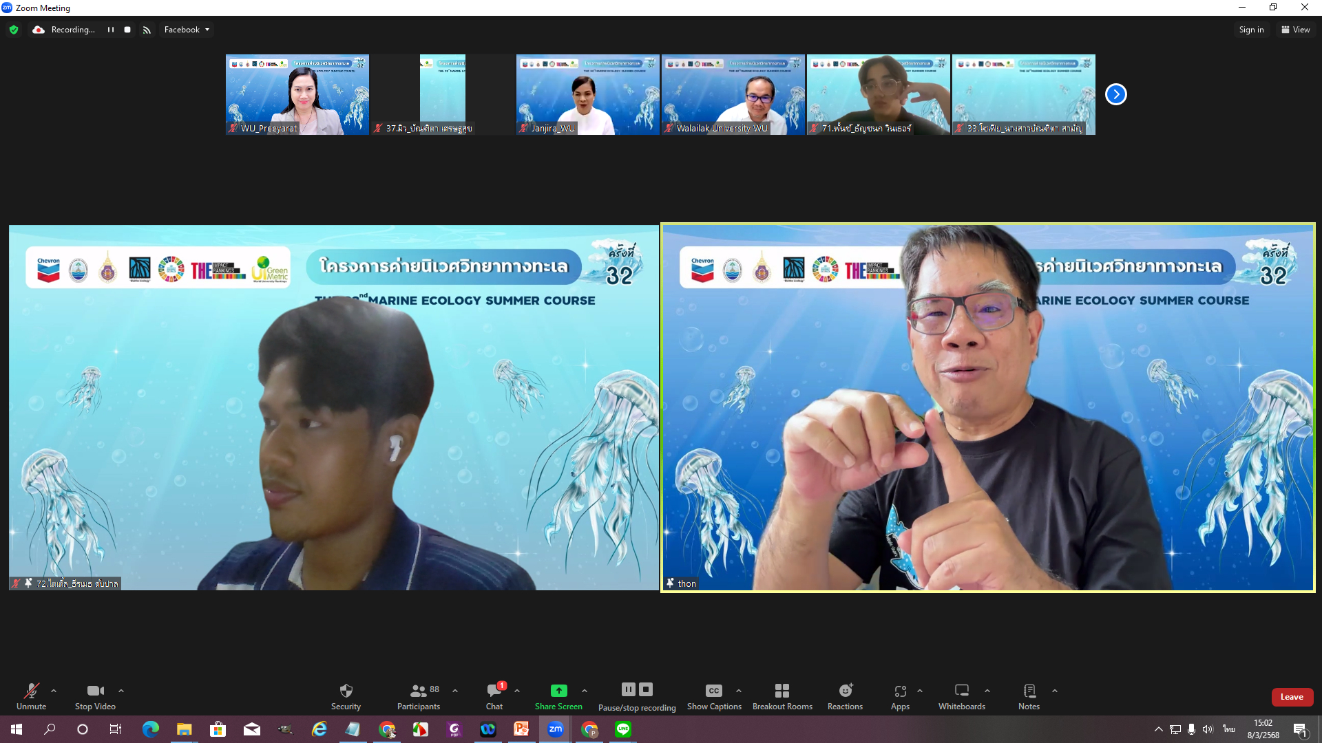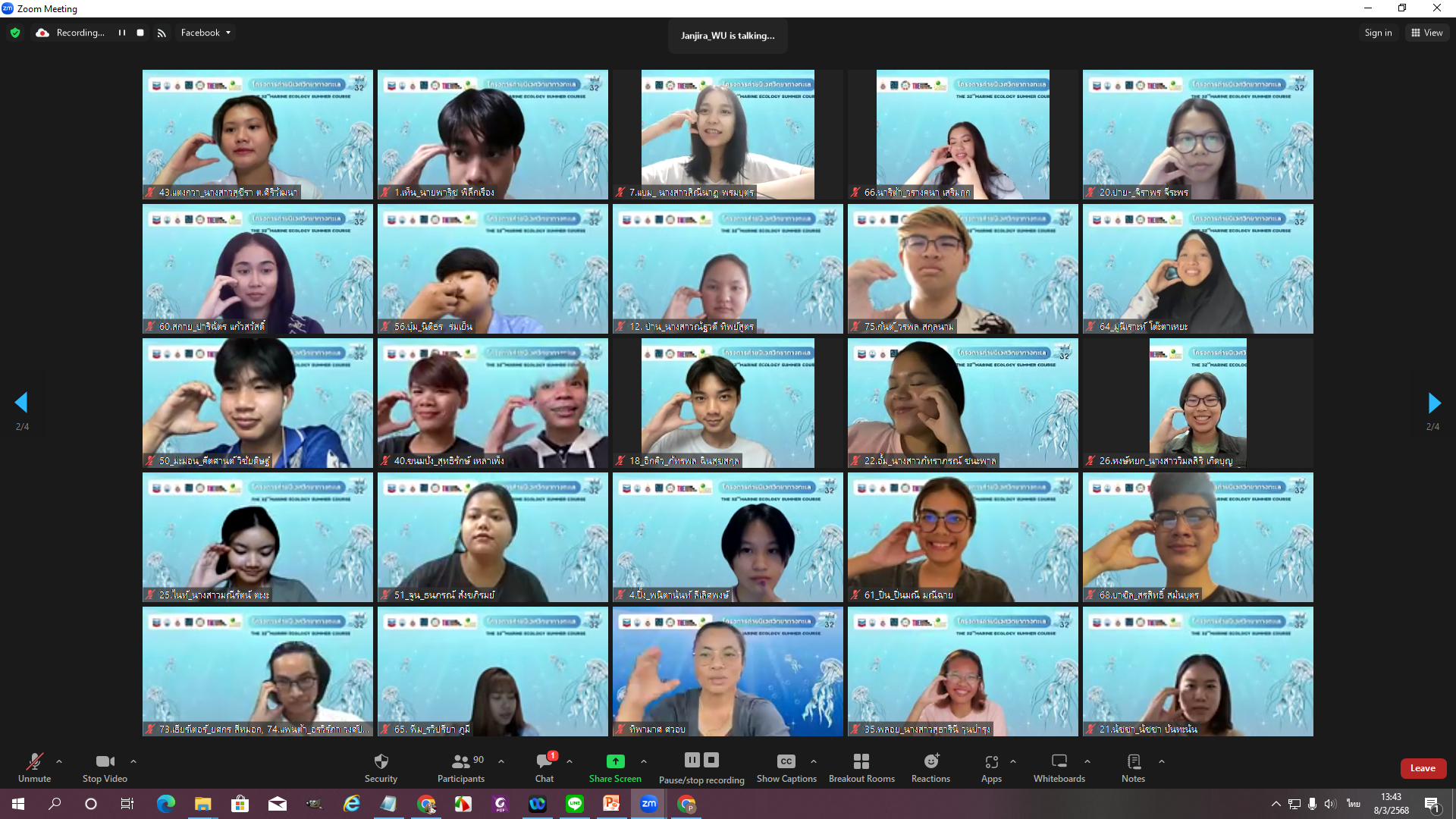 The 32nd Marine Ecology Summer Course features 93 undergraduate and graduate students from universities across Thailand and is divided into two sessions. The first session, an online seminar series, takes place via Zoom Meetings between March and April 2025. The second session consists of hands-on field activities from April 20 to 28, 2025.