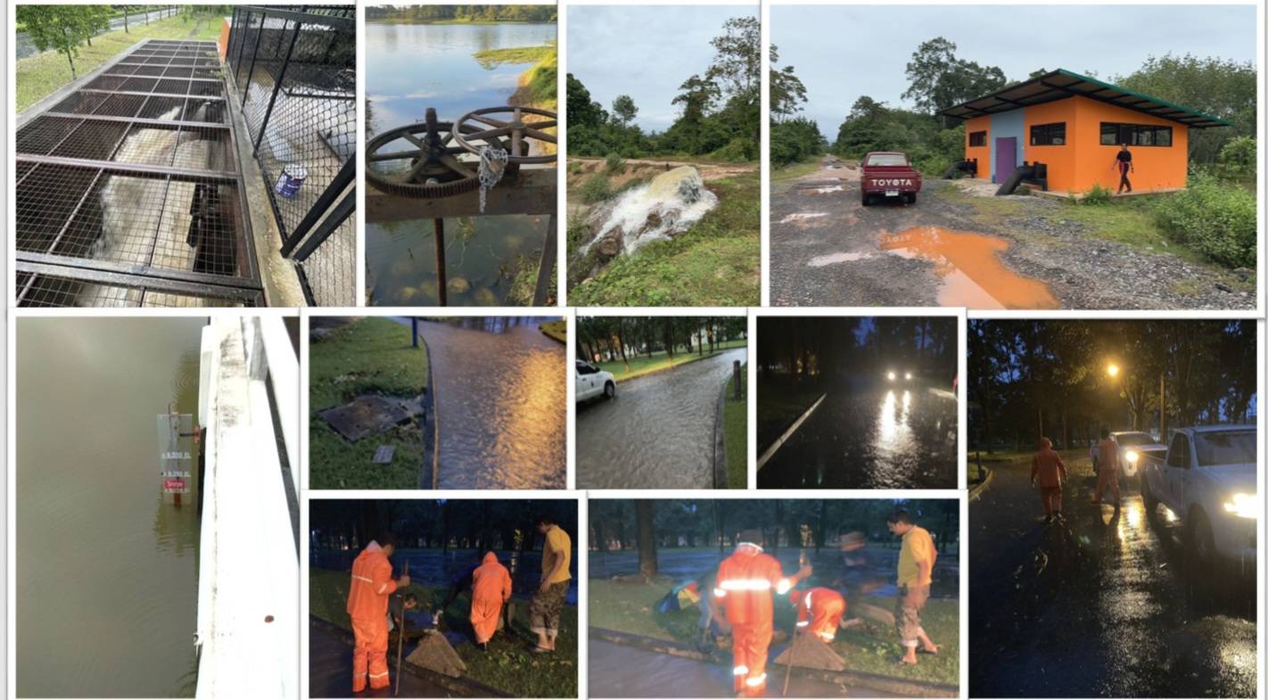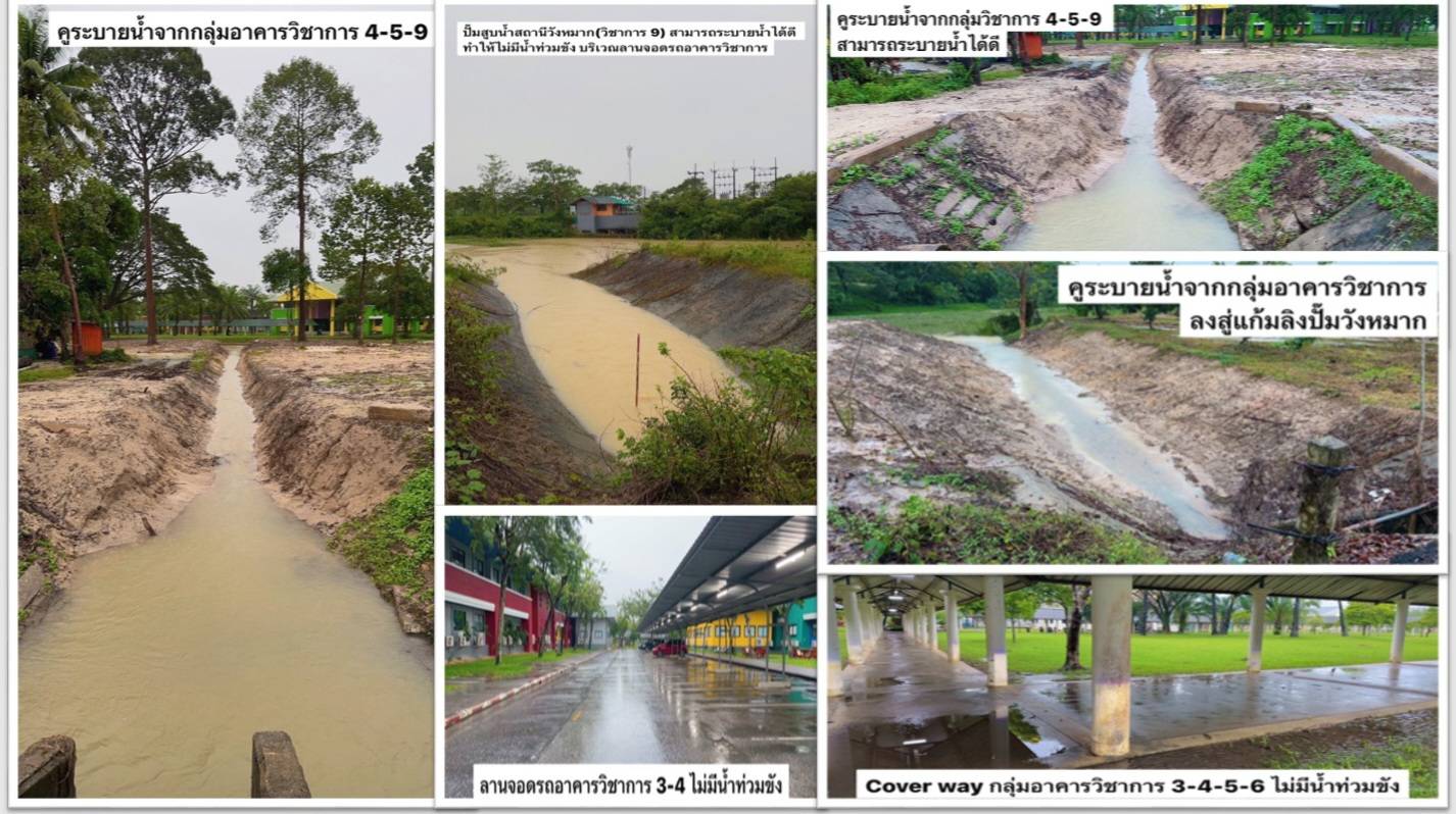 To strengthen disaster prevention and response, Walailak University has appointed an advisory board and a working committee under the Disaster and Emergency Coordination and Response Unit to supervise and monitor potential natural disasters, such as floods and storm damage. The university has implemented several preventive measures, including the construction of surrounding embankments (dyke lines), installation of water drainage and pumping systems, dredging of canals and retention ponds, and removal of aquatic weeds to improve water flow and mitigate flood risks.