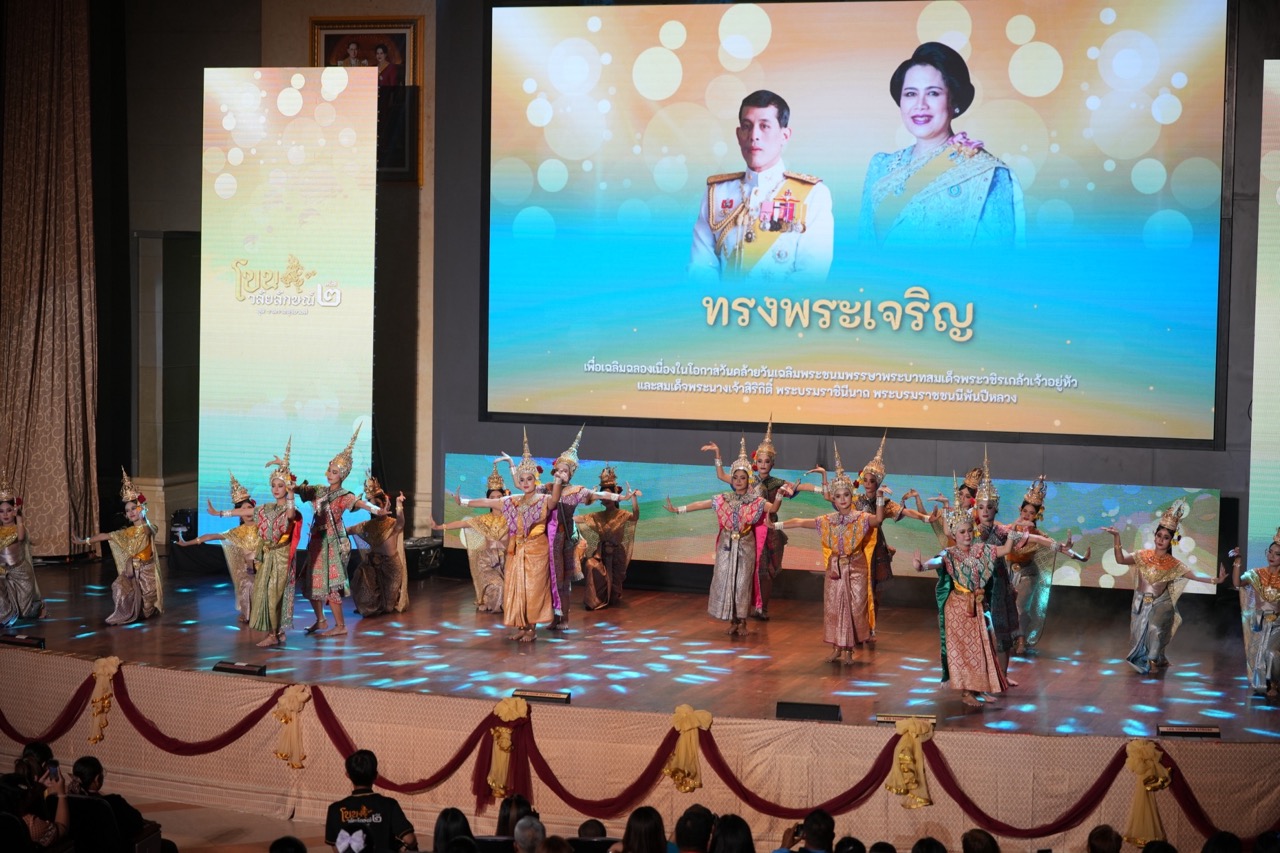 On August 15, 2025, Walailak University organized a Khon performance titled “Ram Raj Suriya Wong” to celebrate the birthdays of His Majesty King Vajiralongkorn and Her Majesty the Queen Mother. The event was officially opened by Prof. Dr. Sombat Thamrongthanyawong, President of Walailak University, along with university executives, faculty members, and over 1,400 students and visitors from Nakhon Si Thammarat Province at the Main Auditorium, Thaiburi Building, Walailak University.
