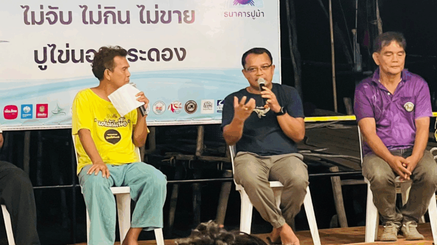 In addition to expert-led lectures, the event provided a platform for local community leaders to share their valuable insights and success stories in sustainable fisheries. Mr. Charoen Toitae, Head of the Ban Nai Thung Blue Crab Bank Learning Center, and Mr. Piya Saea, Head of the Haddsomboon Blue Swimming Crab Bank, presented case studies on community-based fisheries management. They highlighted how local regulations, collective agreements, and knowledge sharing among fishermen have played a vital role in restoring marine resources and improving the livelihoods of coastal communities.