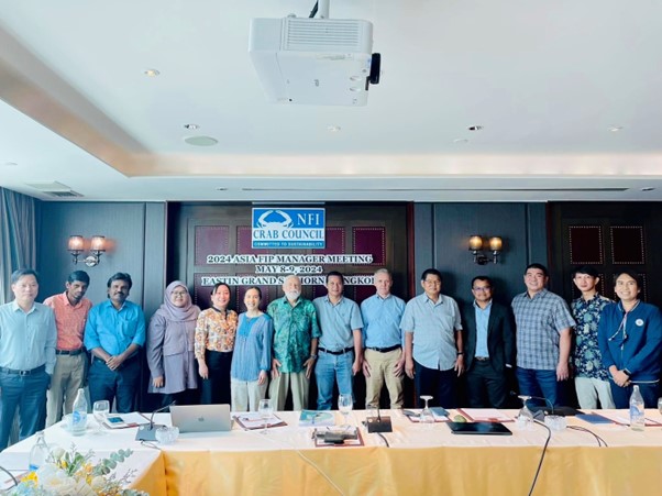 The meeting aimed to facilitate knowledge exchange and present progress updates on BSC FIP from different countries across Asia. Representatives from Sri Lanka, India, Vietnam, Indonesia, and Thailand shared updates. The meeting also discussed future directions for NFI Crab Council’s support of blue swimming crab FIPs, with Thailand highlighting the expansion of the FIP area from Surat Thani Province to Nakhon Si Thammarat and Chumphon. This expansion aims to ensure sustainable management of blue swimming crab resources.