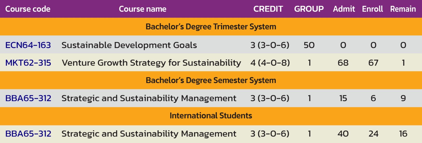 The specific courses on sustainability at Walailak University