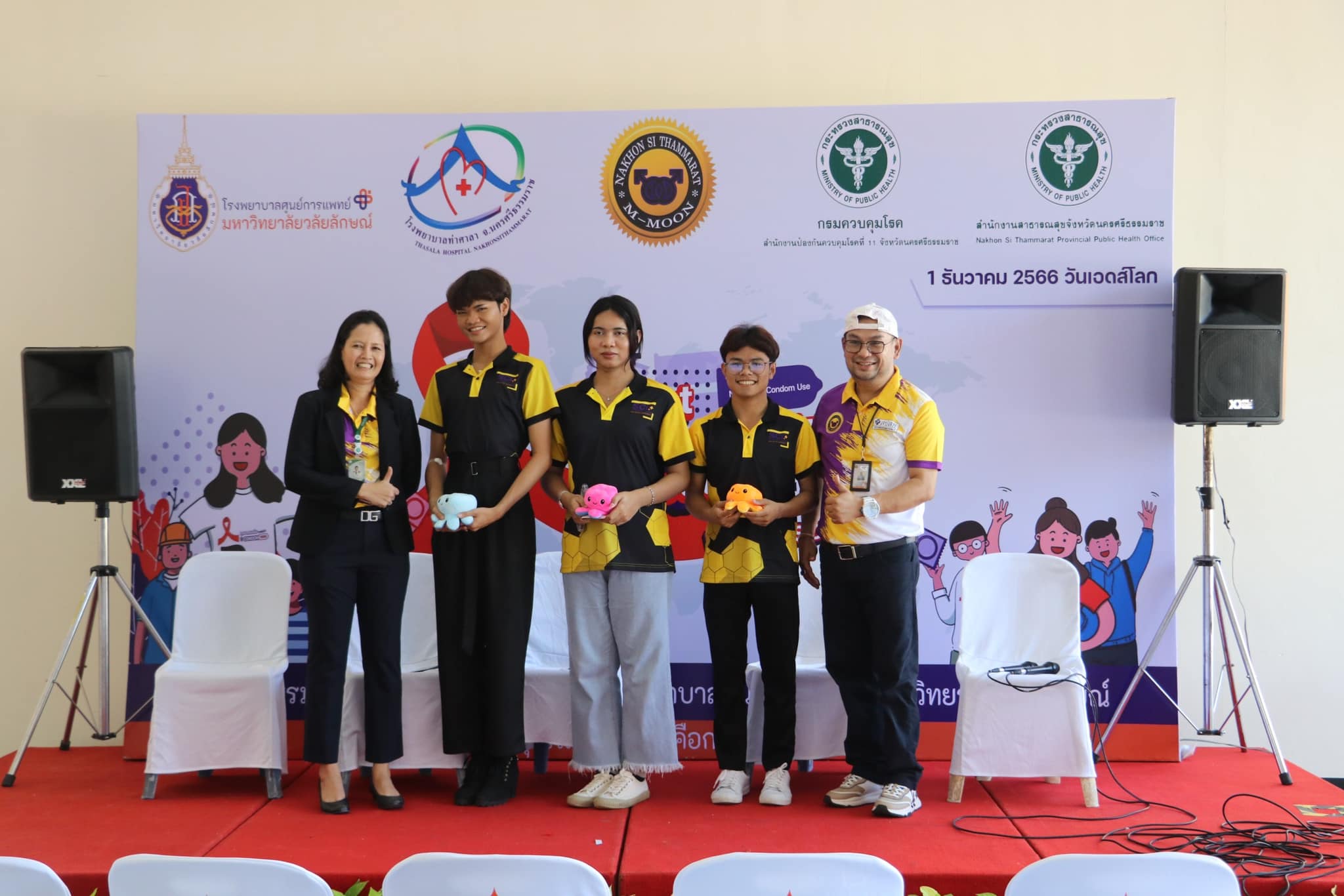 Walailak University, in collaboration with public health agencies in Nakhon Si Thammarat and NGOs such as Disease Control Office 11, Nakhon Si Thammarat Provincial Public Health Office, Tha Sala District Public Health Office, the M-Moon Nakhon Si Thammarat Network, and Tha Sala Hospital, organized World AIDS Day activities to raise awareness and prevent the spread of AIDS. The activities included HIV screening, condom distribution, quiz contests, and a discussion panel on the theme “Let Communities Lead: Collaborating to End AIDS.”