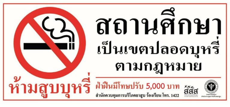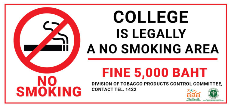 Smoking in educational institutions is linked to risky behaviors that can lead to both short-term and long-term health problems. Additionally, it sets a poor example for new students who might perceive smoking as a normal behavior. In this regard, the Ministry of Public Health issued a decree in 2018 designating public places, workplaces, and vehicles as non-smoking areas. Consequently, Walailak University has adopted this decree as a guideline for its policies and measures to make the university as a smoke-free campus that have implemented policies prohibiting the use of tobacco products at all campus.