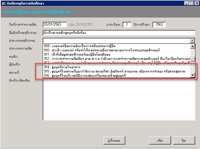 Re: Measures of Punishment and Recording behavior score of students, B.E. 2553