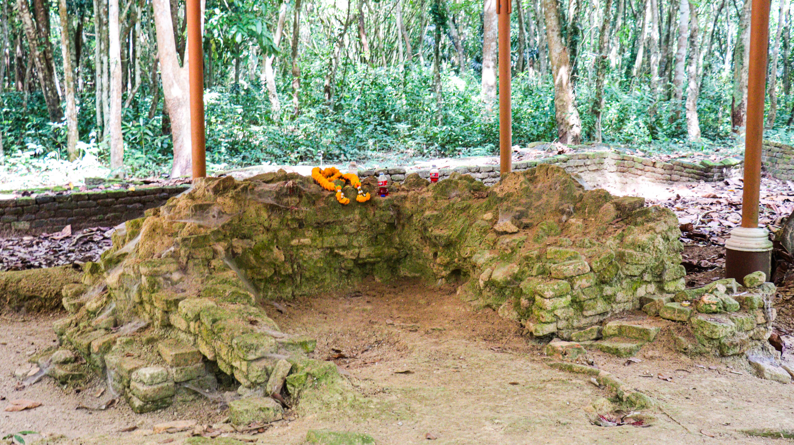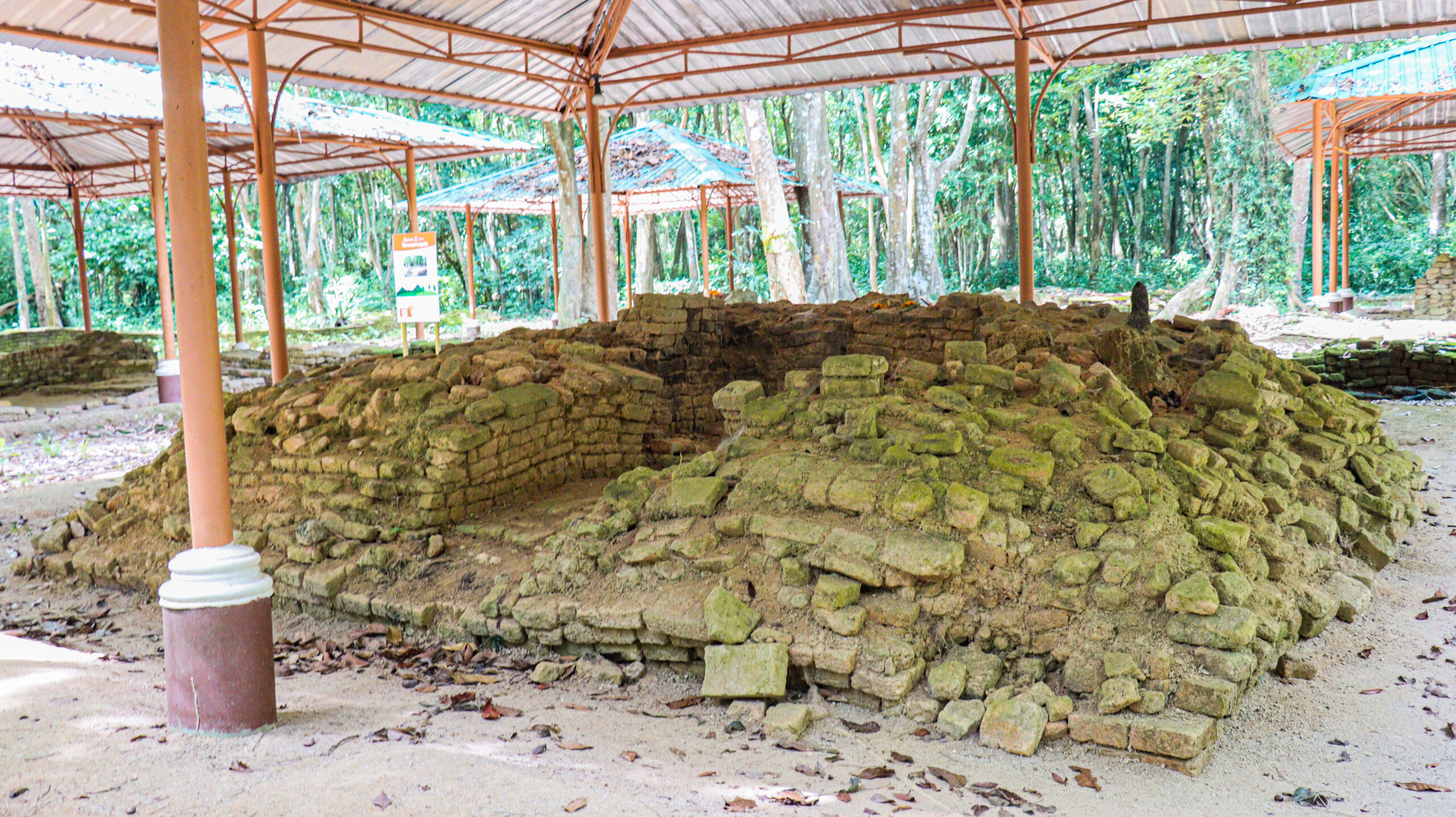 This archaeological site was excavated between 2002 and 2003, revealing four ancient brick structures enclosed by a wall, with an entrance gate located on the eastern side. Beyond the gate, two rectangular ponds are flanking the path leading to the site.
