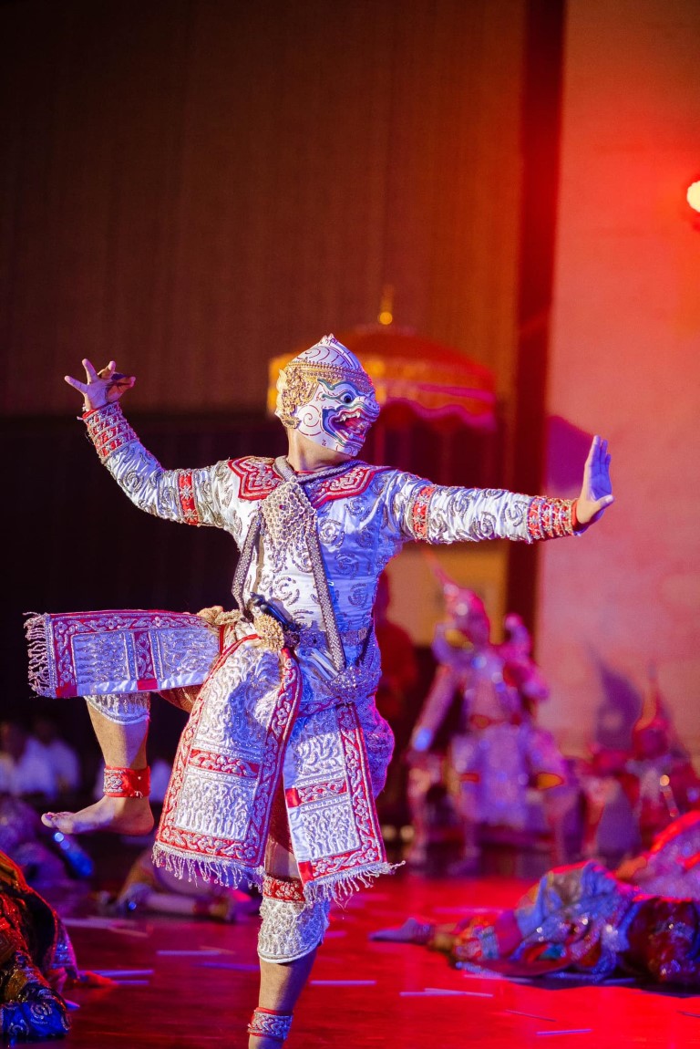 In the same year, WU hosted a Khon performance of the Ramakien titled The Battle of Indrajit: Brahmastra in honor of the birthdays of His Majesty King Maha Vajiralongkorn Phra Vajiraklaochaoyuhua and Her Majesty Queen Sirikit, the Queen Mother. The performance took place at the main auditorium of the Thaiburi Building. This particular Khon play tells the story of Indrajit, who wields the powerful arrow, Brahmastra, and leads his army to battle against the forces of Lakshmana. The objective of this performance was to preserve cultural heritage and promote Thai culture globally under the concept of “Culture Beyond Frontiers.”