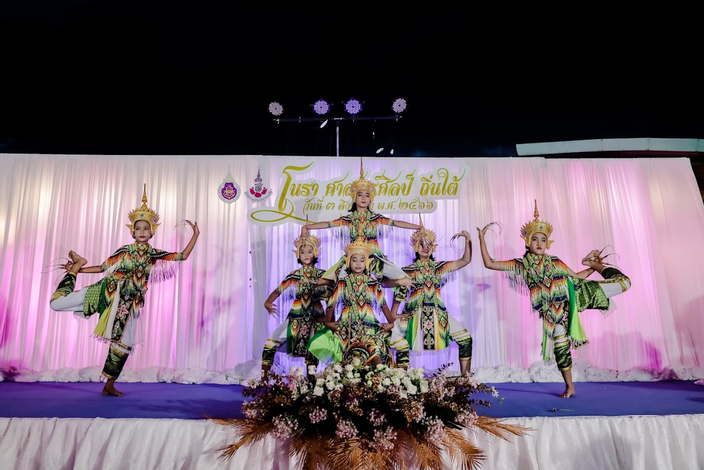 In 2023, the university featured the contemporary Thai dance performance “The Mask Dance,” which incorporates traditional Thai dance movements using various parts of the body. The performance combines both slow and fast dance styles, harmonized with different rhythmic music, creating an exciting and captivating experience for the audience. The props used in the performance include masks, large fans, and crystal balls. The performance was held at the Convention Center on the 3rd floor of the Ubon Ratchathani Cultural Center, Ubon Ratchathani Rajabhat University. Additionally, this performance was showcased at Universitas Syiah Kuala in Banda Aceh, Indonesia, as part of an international exchange program promoting arts and culture and nurturing relations through the Indonesia-Malaysia-Thailand Growth Triangle cultural and academic seminar.
