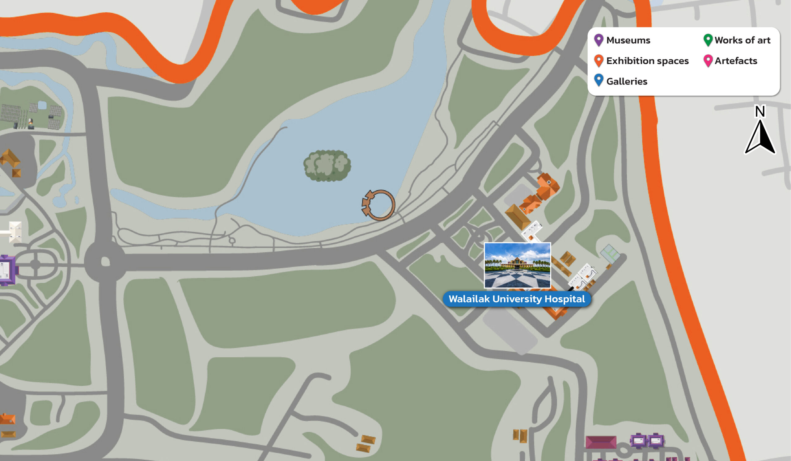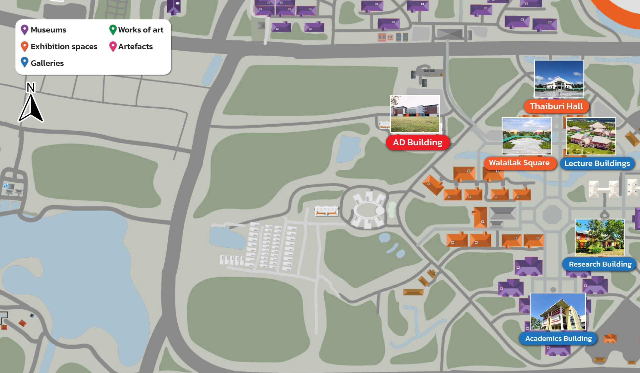 Figure : Map showing free public access to all museums, exhibition spaces, galleries, works of art, and artefacts at Walailak University.