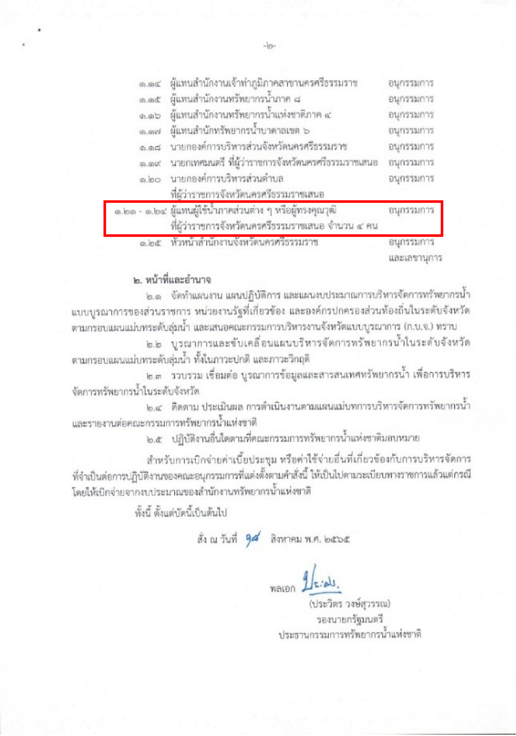 - Subcommittee Member for Water Resources of Nakhon Si Thammarat Province.