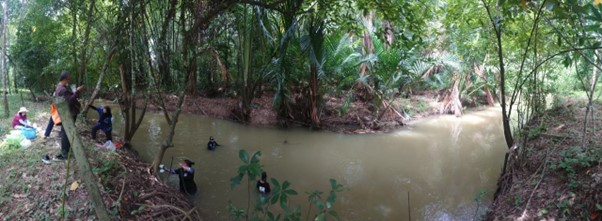 The living weir, located in the midstream of the Wang Hip River, was constructed with a focus on sustainable water conservation. It utilizes ecosystem-based adaptation measurements and incorporates local community knowledge, combined with the Philosophy of Sufficiency Economy. The project also involves studying and developing a digital solution-based Monitoring and Evaluation (M&E) diagnostic methodology to assess the impacts and benefits of living weirs (LWs). This initiative is a collaboration between Walailak University, the local community, local administrative organizations, and Deutsche Gesellschaft für International Zusammenarbeit (GIZ) Germany. The project promotes the conservation of water resources by encouraging local communities to utilize the benefits of the living weir, while also studying its relevance to various dimensions, including: