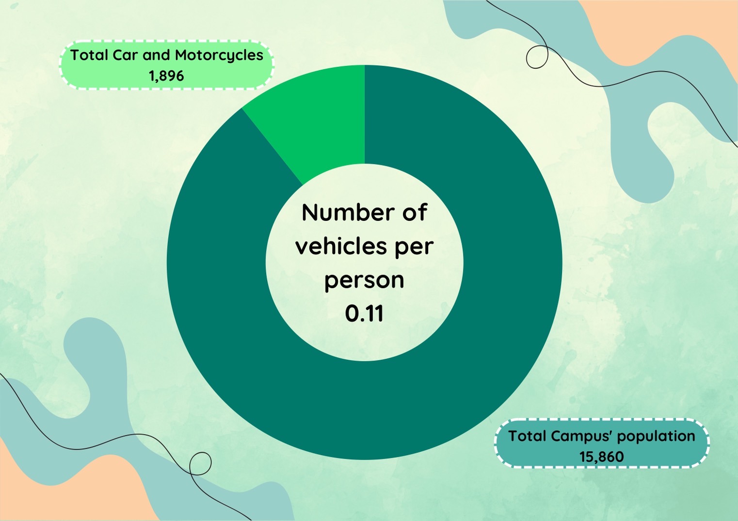The total number of vehicles (cars and motorcycle with combustion engines) divided by the total campus’ population (TR.1)