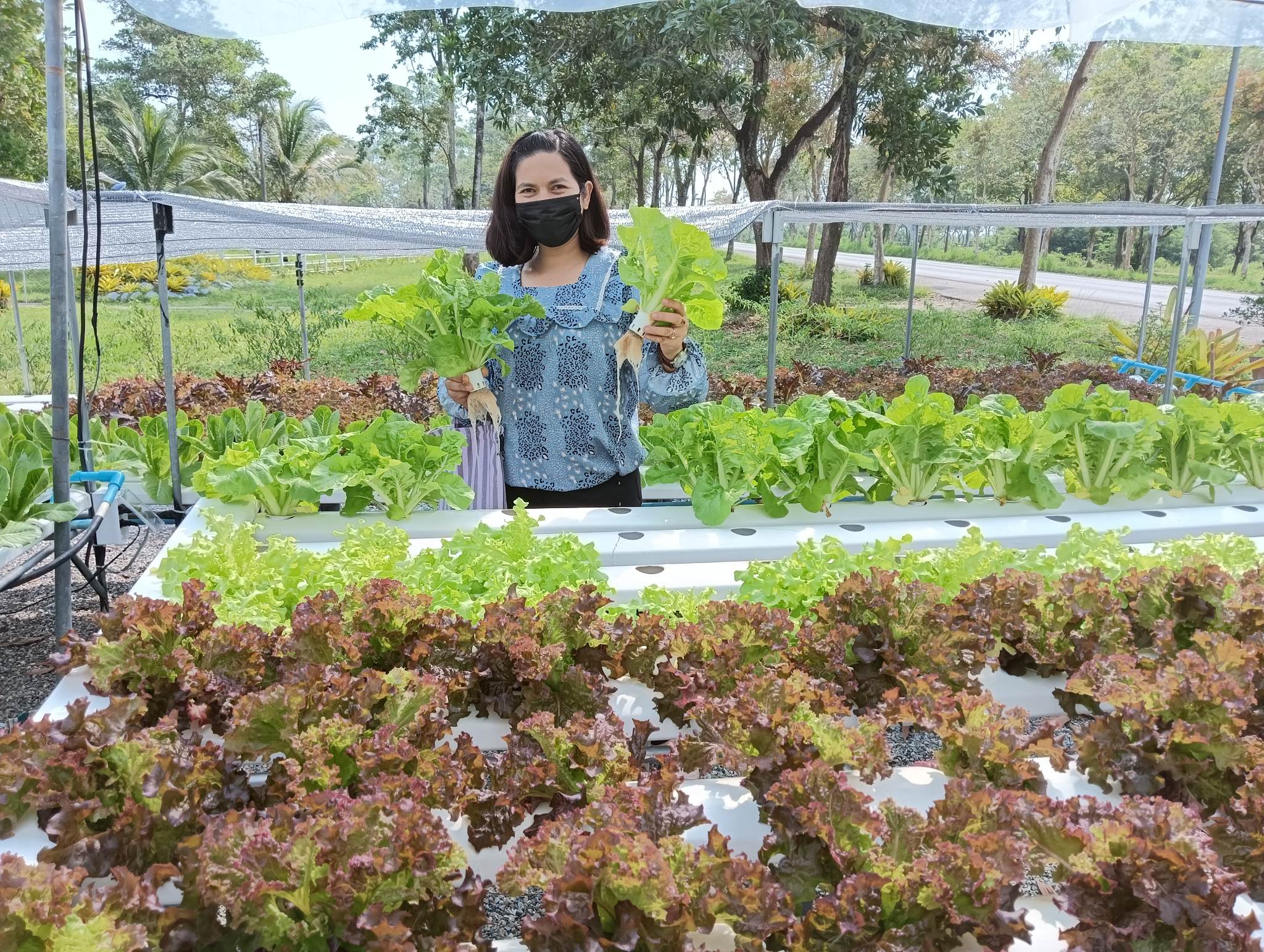 • Hydroponic Vegetable Cultivation: This initiative addresses food safety concerns by growing vegetables using the Nutrient Film Technique (NFT) within greenhouses, aiming to reduce pesticide contamination. The center grows crops such as Chinese kale, Chinese mustard, Chinese cabbage, and lettuce.