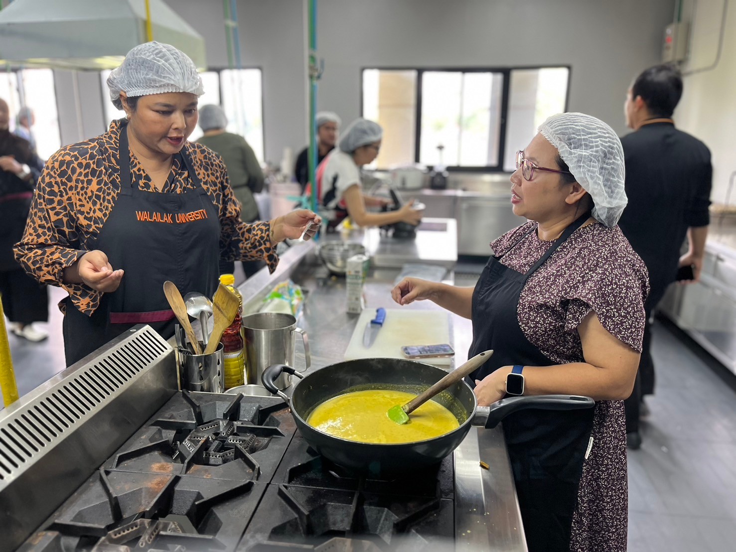 Food producers benefit from WU’s advanced laboratory facilities, which help them improve food safety and production processes. The Walailak Culinary Training Center offers workshops on sanitation and food safety standards for local restaurants and cafés, ensuring compliance with Ministry of Public Health regulations. A notable event, the “Sanitation & Food Safety Training Workshop” held on May 19, 2023, educated local restaurant owners on maintaining food hygiene, thus contributing to public health and enhancing gastronomy tourism in Thasala District.