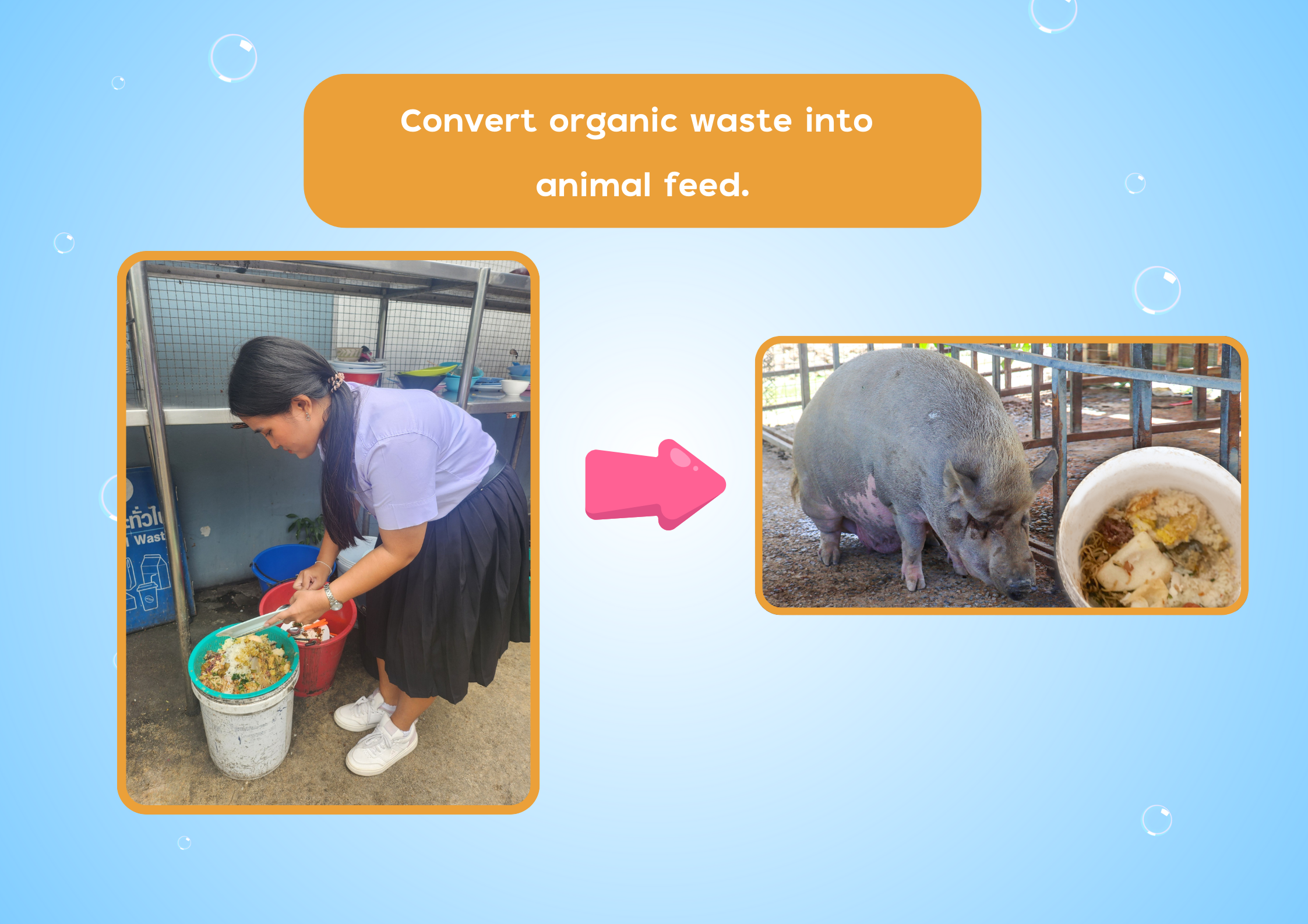 Organic waste utilization for animal feed.