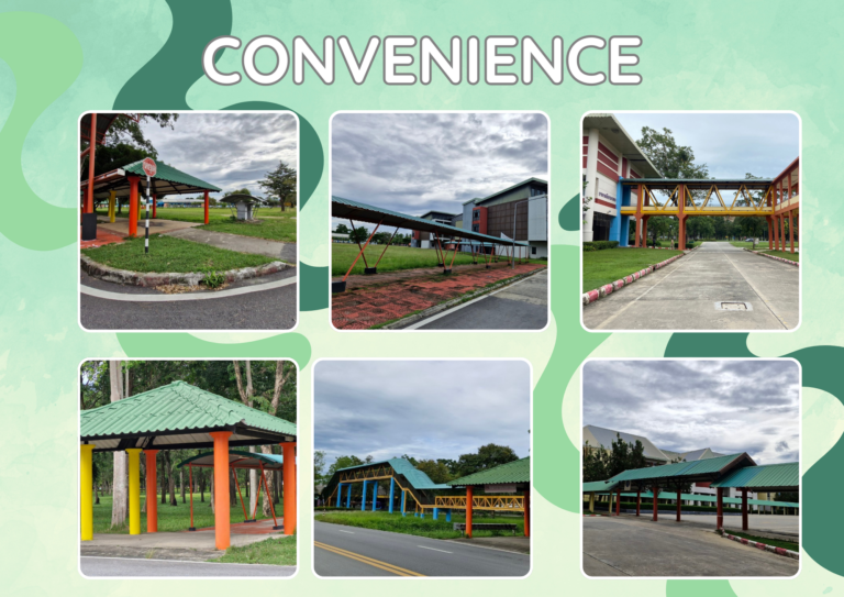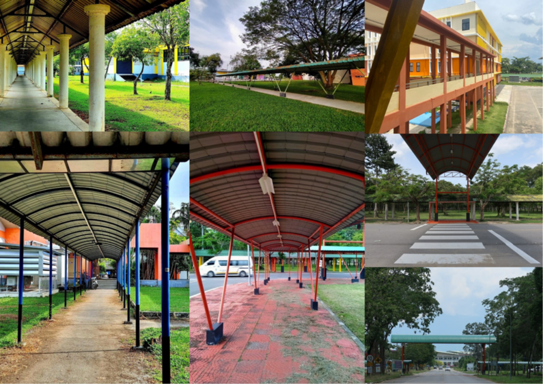 • Covered walkways provide shelter for users from adverse weather conditions, such as intense sun or rain.