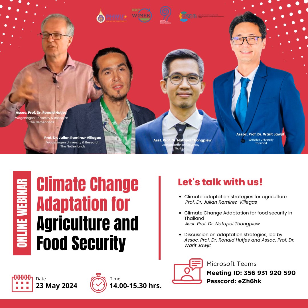 Workshop on Climate Risk Assessment and Building Climate Resilience in Southern Thailand : School of Public Health, Walailak University and Wageningen University have teamed up to host a workshop focusing on climate risk assessment and building climate resilience through climate services.