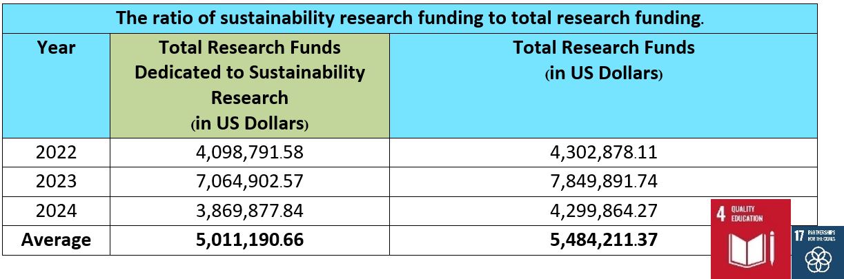 1. Total Research Funds Dedicated to Sustainability Research (2022-2024) :