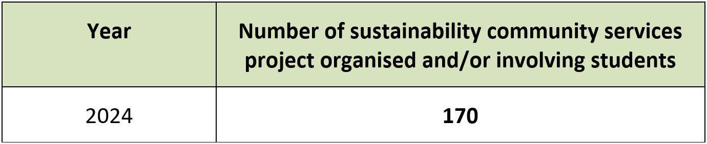 Number of sustainability community services project organised and/or involving students