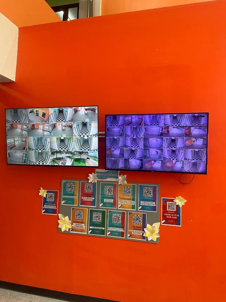 Student dormitories are equipped with fingerprint scanning systems for secure entry and CCTV cameras to monitor and prevent unwanted incidents.