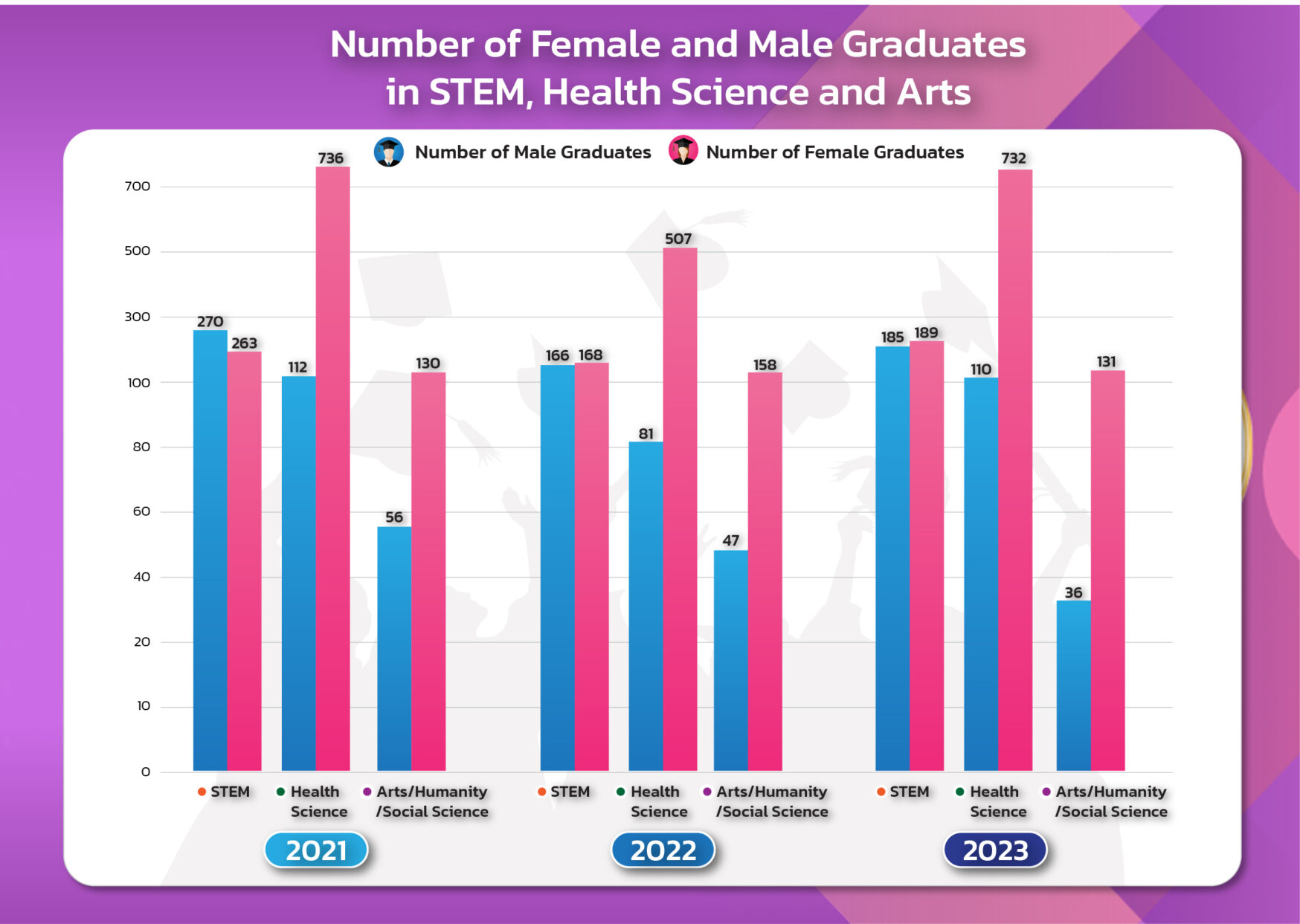 As the graph above, the exact number represents female students’ success rate on graduation is rising in 2023.
