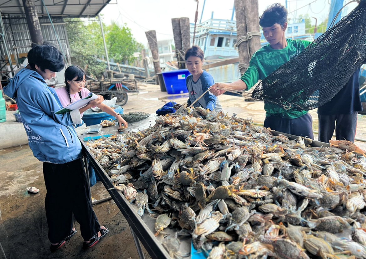 The economic impact of these “crab banks” on local fishing communities is also significant. Before the crab bank project began in 2018, local fishers reported an average daily crab catch of only 5 kg per boat. After one year, catches increased to an average of 8 kg per boat per day. With the project’s expansion over several years and the establishment of crab banks in more coastal areas, average catches rose further to 10–15 kg per boat per day. This increase in catch rates reflects similar trends in commercial fishing, where daily catches rose from 40–60 kg to 80–100 kg per boat, occasionally exceeding 100 kg during peak seasons. This consistent improvement in catch volumes underscores the crab bank project’s success in supporting local fisheries, improving community livelihoods, and fostering sustainable marine resource management.