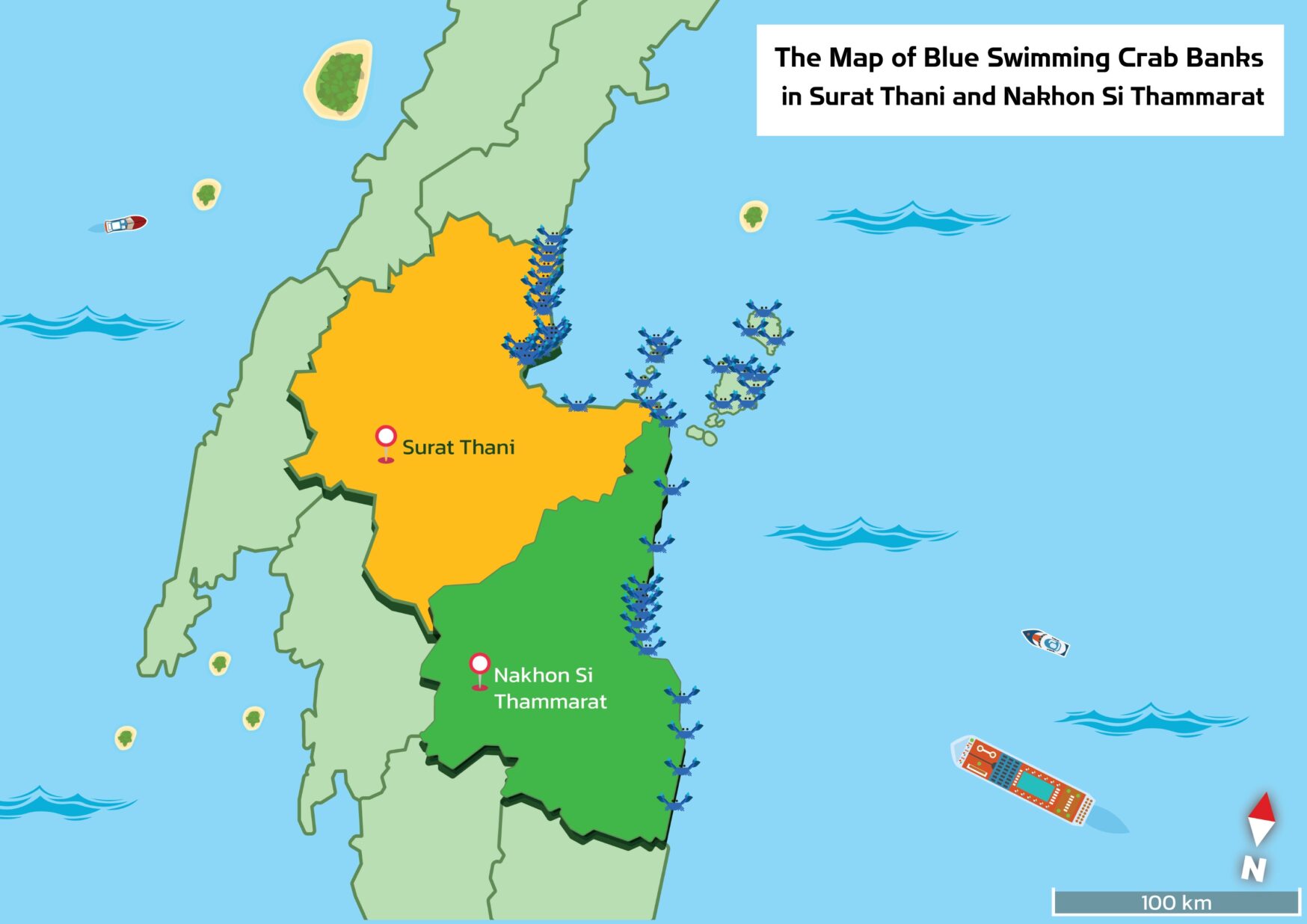 Thailand’s coastal regions are home to diverse marine species, providing crucial protein and income for many Thai people, especially those in coastal areas. However, heavy fishing pressure has led to a significant decline in marine resources, particularly the blue swimming crab (BSC), a key species in Thailand’s fishing industry and a valuable export that makes the country one of the top four global exporters. This decline affects fishers, the seafood supply chain, and Thailand’s overall GDP from fishery exports.