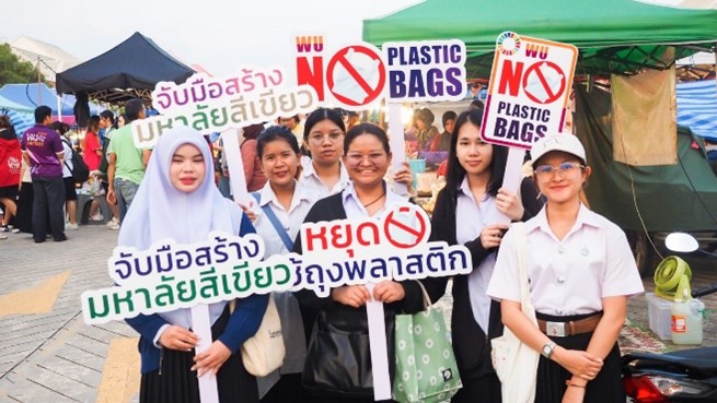 In 2025, Walailak University organized a campaign to ban the use of foam food containers and to reduce or eliminate plastic usage within the campus. The events took place at the Chor Pradu Food Center and the Chan Pradu Night Market. Representatives from student groups voluntarily participated in the campaign, promoting the reduction of plastic bag usage, encouraging the use of personal cups and cloth bags instead of plastic grocery bags, and raising vendors’ awareness across various areas including the Chor Pradu Food Center, Student Activities Building’s Food Center, Walailak University Hospital’s Food Center, Chan Pradu Night Market, Bota Market, and other shops within the university, to cease providing plastic carry bags.