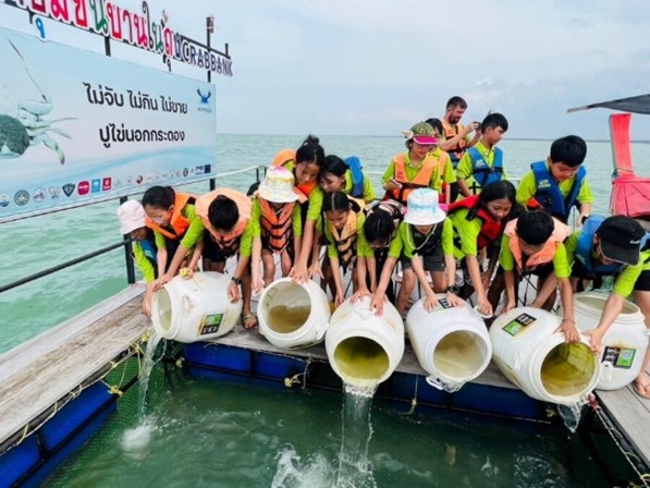 The event featured various activities, including fish extraction from nets, a waste management program, waste collection, discussions on the negative impacts on marine ecosystems, and the release of young blue swimming crabs into the sea. Additionally, Director Amonsak served as a key speaker, sharing valuable knowledge about the biology of blue crabs, the process of raising them during the zoeal (larval) stage, and responsible and sustainable fishing practices.