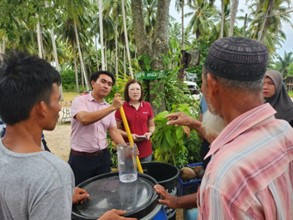 THA SALA, NAKHON SI THAMMARAT, 23 August 2024 – Walailak University, under the leadership of Asst. Prof. Dr. Chuthamat Rattikansukha, Acting Sub Lt. Worawit Pradittakarn, and Asst. Prof. Dr. Kamon Thinsurat, in collaboration with the Center for Academic Services, organized a workshop on waste disposal aimed at reducing greenhouse gas (GHG) emissions for the local people in Ban Laem community, Tha Sala, Nakhon Si Thammarat. The workshop focused on teaching participants to create bio-extracts from aquatic animal carcasses, a byproduct of local fishing, to mitigate the environmental pollution caused by these leftovers. The university also provided equipment to empower the community in further developing bio-extract production.