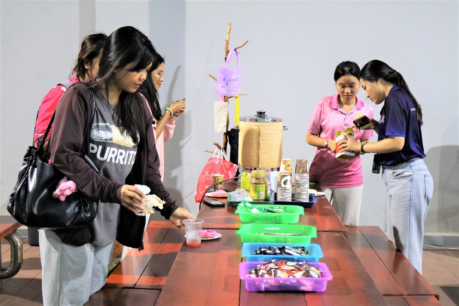 In the 2024 academic year, the activity was held from 7:00–10:00 p.m. in front of the Center for Library Resources and Educational Media Building, serving 385 students. A variety of foods and drinks were provided, including:
