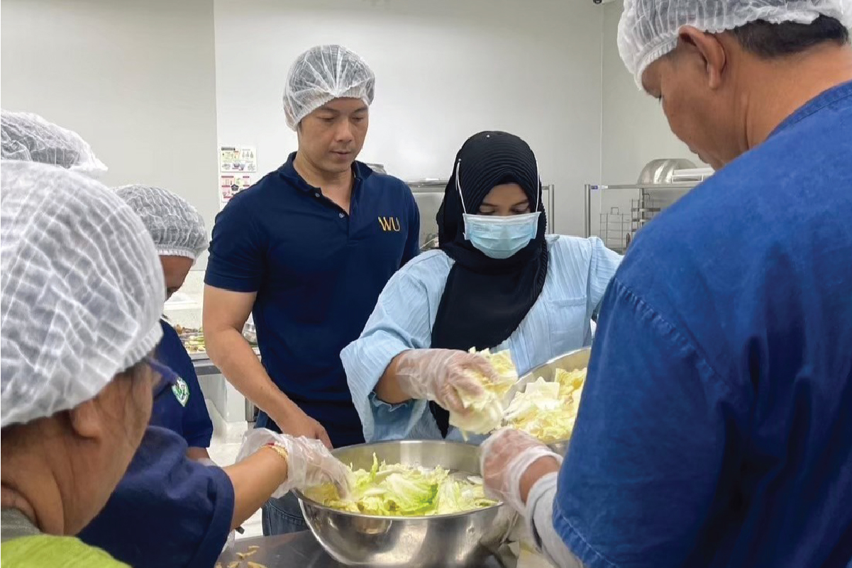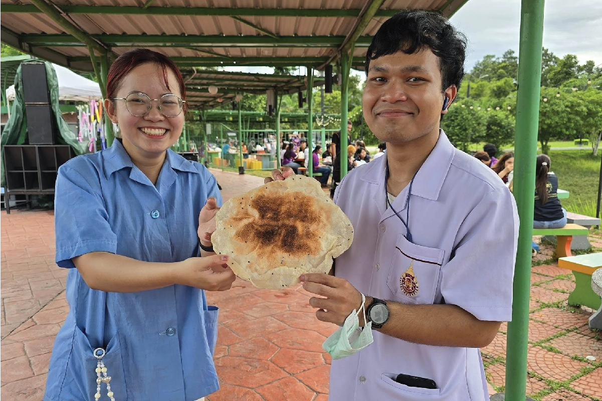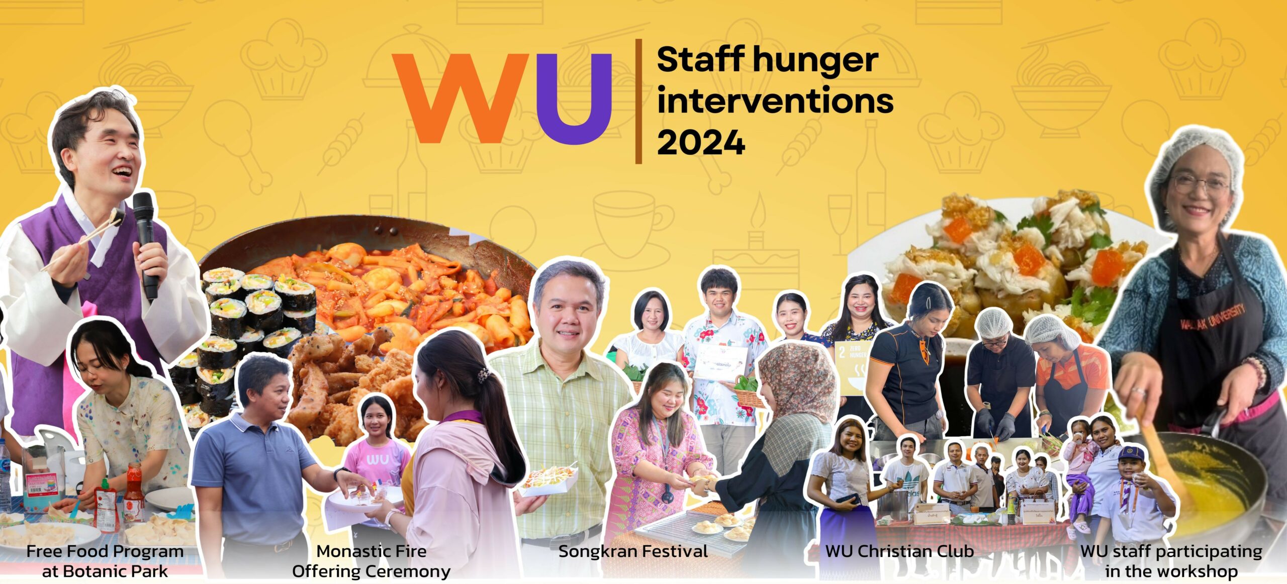 The WU Christian Club organized a cultural exchange activity featuring free tastings of Korean food, including dishes such as kimbap and tteokbokki, at the Chor Pradu Food Center. One of the objectives of this activity is to provide intervention to prevent or alleviate hunger among staff members who are not familiar with Thai food. A variety of food, especially those that are national dishes, must be available.